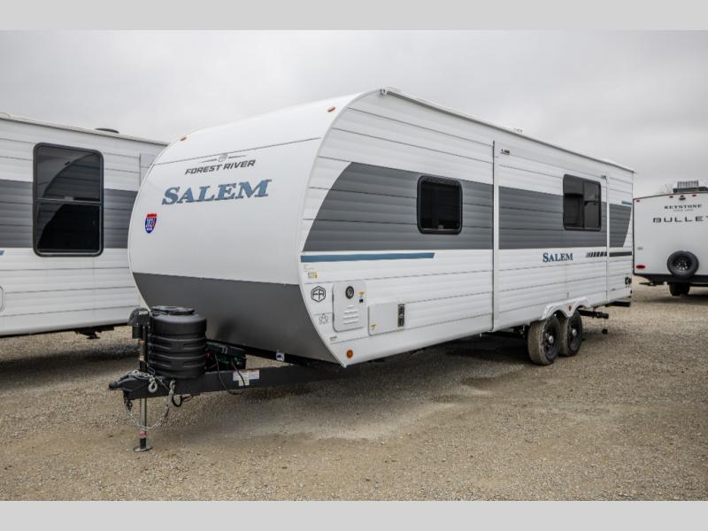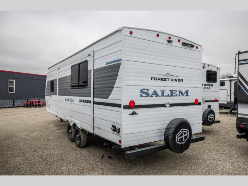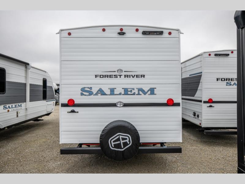The Salem travel trailers are packed with hassle-free camping amenities and there are a variety of floorplans to choose from. The heated and enclosed Accessibelly will help protect against the elements and debris during transport, and the exterior retro/metal redesign is sure to be eye-catching! There are stylish roller shades inside, along with updated backsplash, elegant curtain rods and curtains, plus many more interior comforts! Choose a Salem travel trailer today for quality and value!