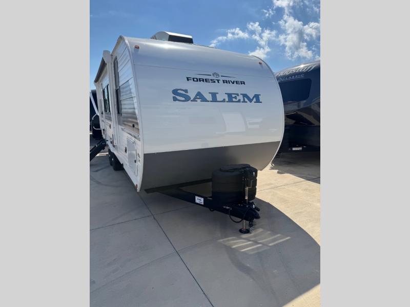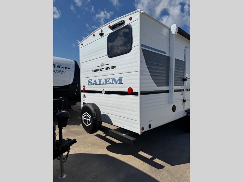 The Salem travel trailers are packed with hassle-free camping amenities and there are a variety of floorplans to choose from. The heated and enclosed Accessibelly will help protect against the elements and debris during transport, and the exterior retro/metal redesign is sure to be eye-catching! There are stylish roller shades inside, along with updated backsplash, elegant curtain rods and curtains, plus many more interior comforts! Choose a Salem travel trailer today for quality and value!