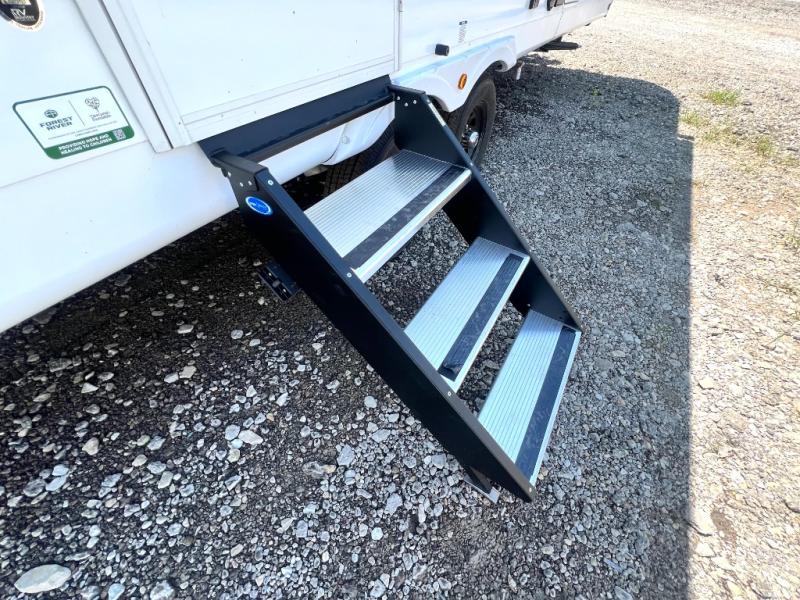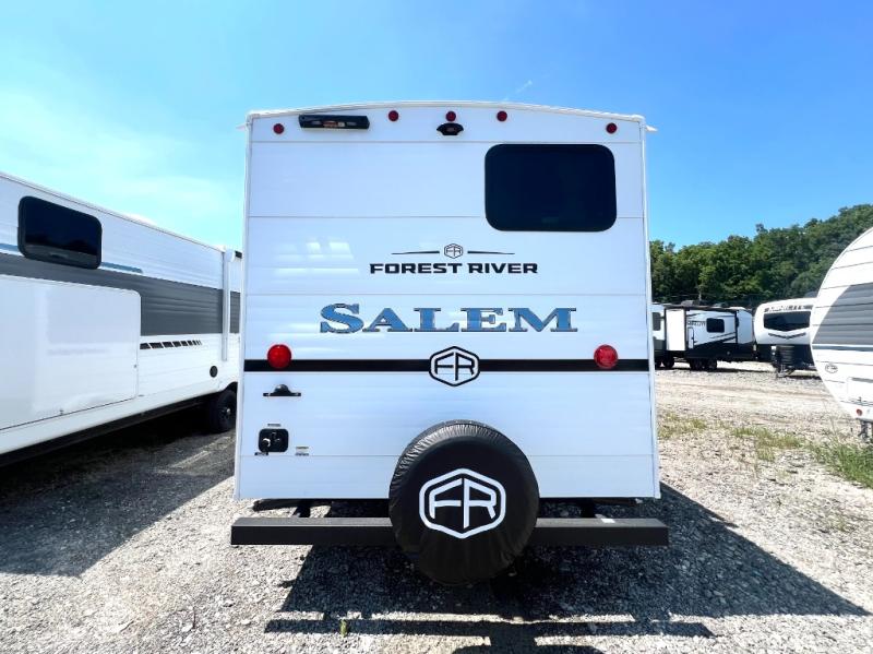 The Salem travel trailers are packed with hassle-free camping amenities and there are a variety of floorplans to choose from. The heated and enclosed Accessibelly will help protect against the elements and debris during transport, and the exterior retro/metal redesign is sure to be eye-catching! There are stylish roller shades inside, along with updated backsplash, elegant curtain rods and curtains, plus many more interior comforts! Choose a Salem travel trailer today for quality and value!