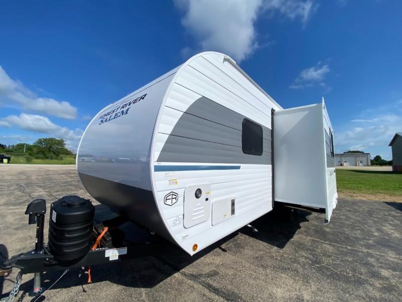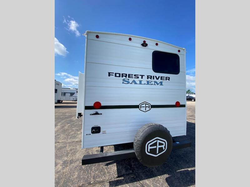 The Salem travel trailers are packed with hassle-free camping amenities and there are a variety of floorplans to choose from. The heated and enclosed Accessibelly will help protect against the elements and debris during transport, and the exterior retro/metal redesign is sure to be eye-catching! There are stylish roller shades inside, along with updated backsplash, elegant curtain rods and curtains, plus many more interior comforts! Choose a Salem travel trailer today for quality and value!