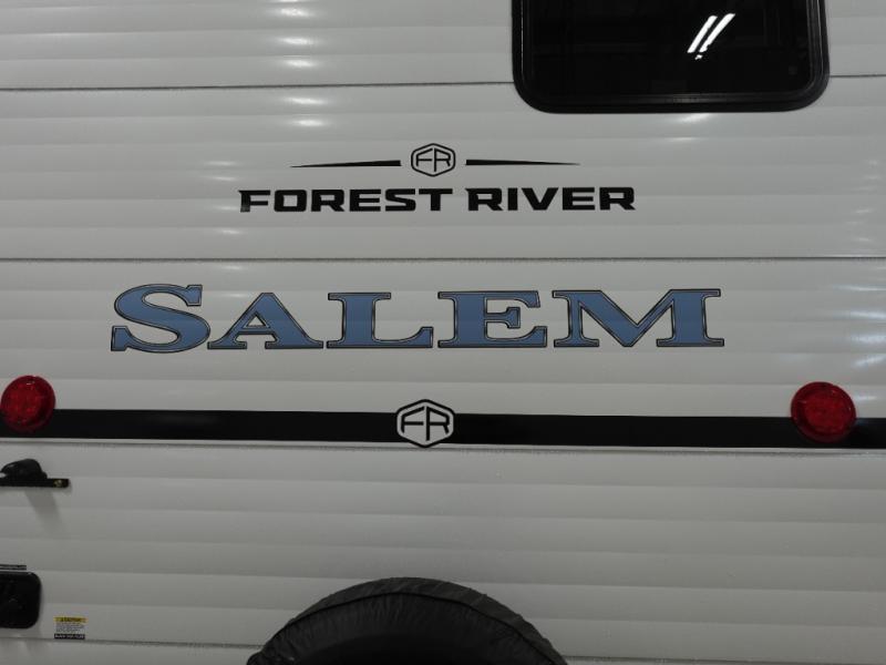 The Salem travel trailers are packed with hassle-free camping amenities and there are a variety of floorplans to choose from. The heated and enclosed Accessibelly will help protect against the elements and debris during transport, and the exterior retro/metal redesign is sure to be eye-catching! There are stylish roller shades inside, along with updated backsplash, elegant curtain rods and curtains, plus many more interior comforts! Choose a Salem travel trailer today for quality and value!