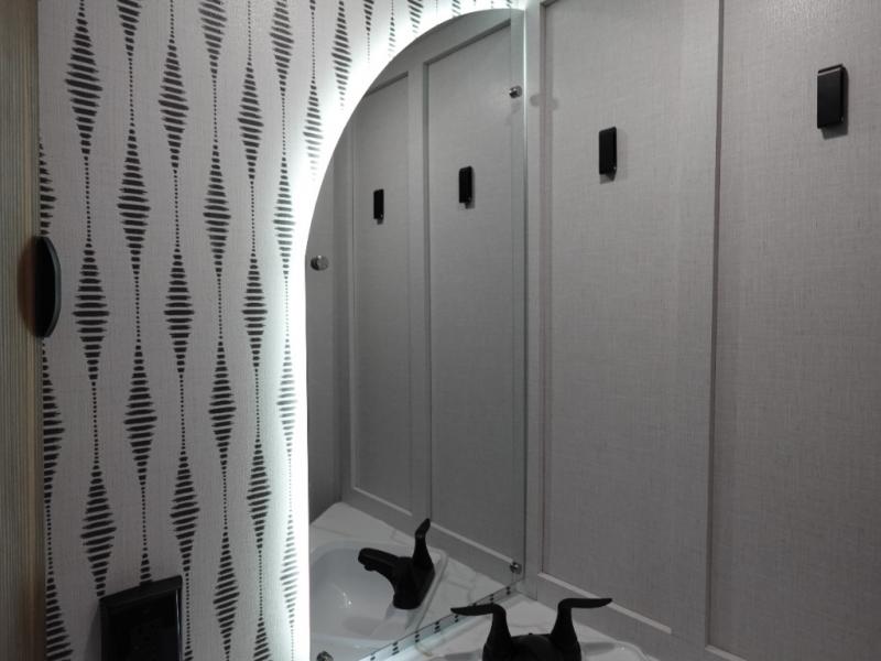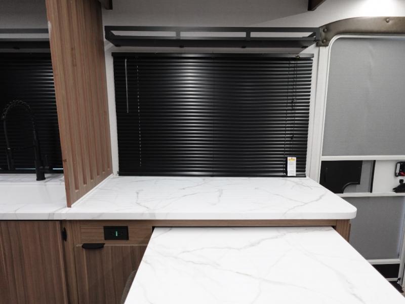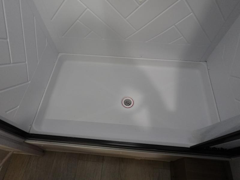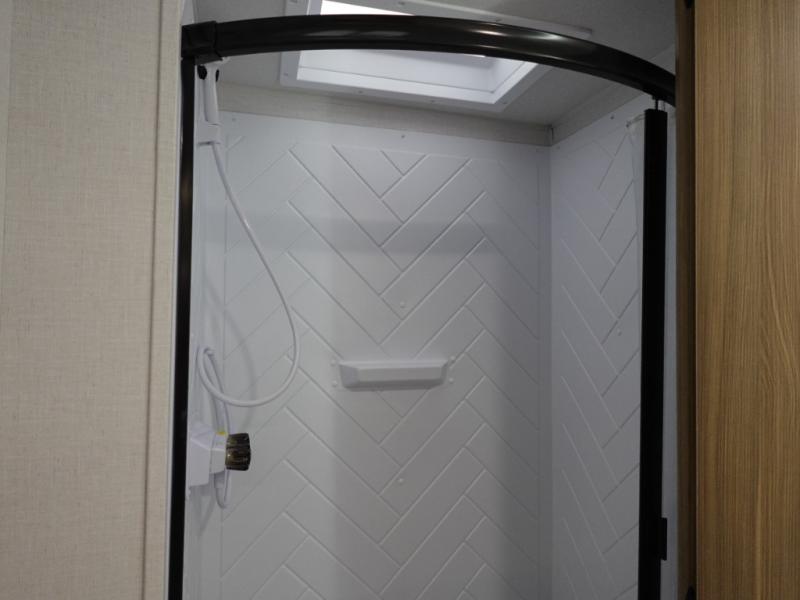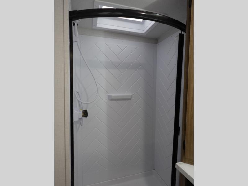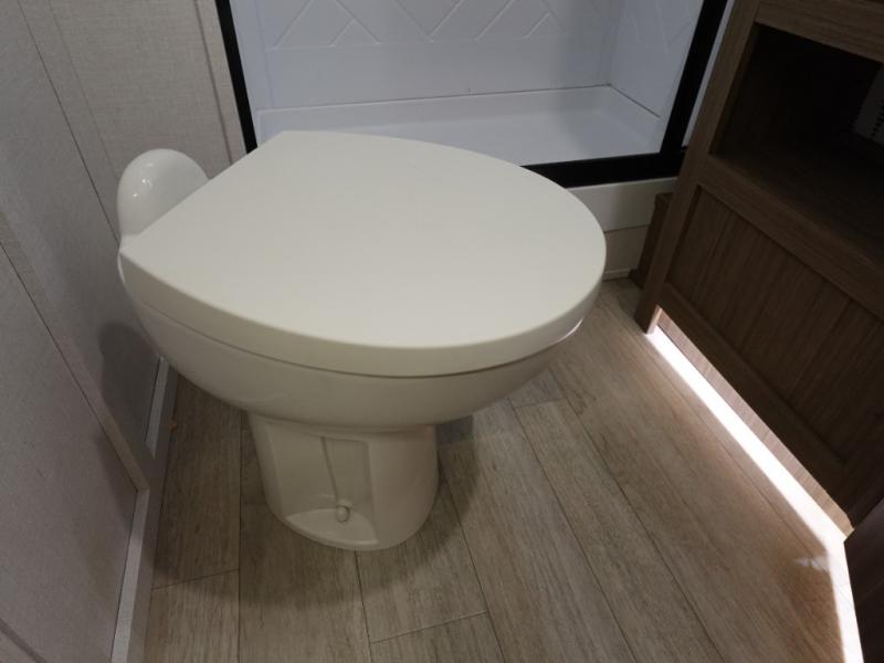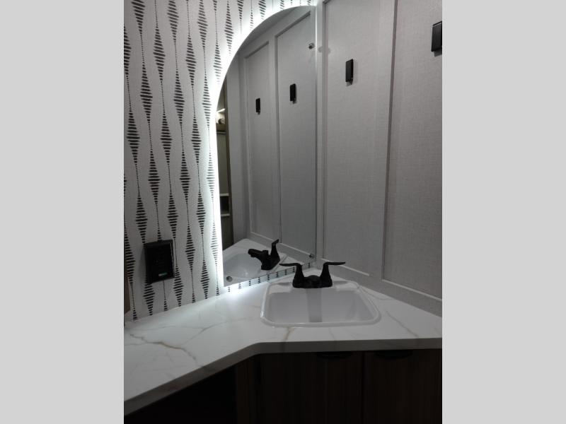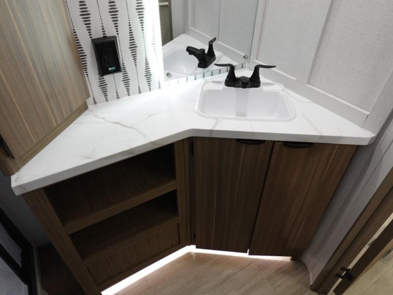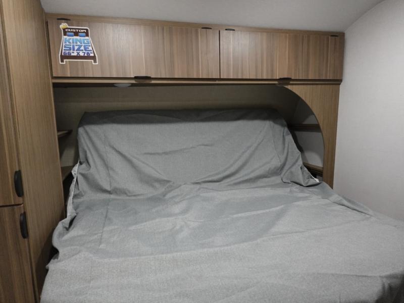 You can enjoy at-home comforts wherever you decide to camp in this travel trailer. The custom king bed with Versa Tilt includes dual shelves and a wardrobe so you can keep your space tidy. If you have a guest or two little ones, they can sleep on the jackknife sofa within the large slide out or on the double-size bunks right next to the full bath. Once you've made breakfast in the fully equipped kitchen, you can utilize the pull-out table to dine at. There is also a fireplace below the table, which will be perfect for cozy evenings indoors.