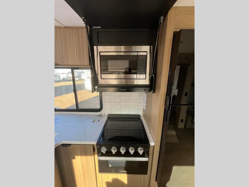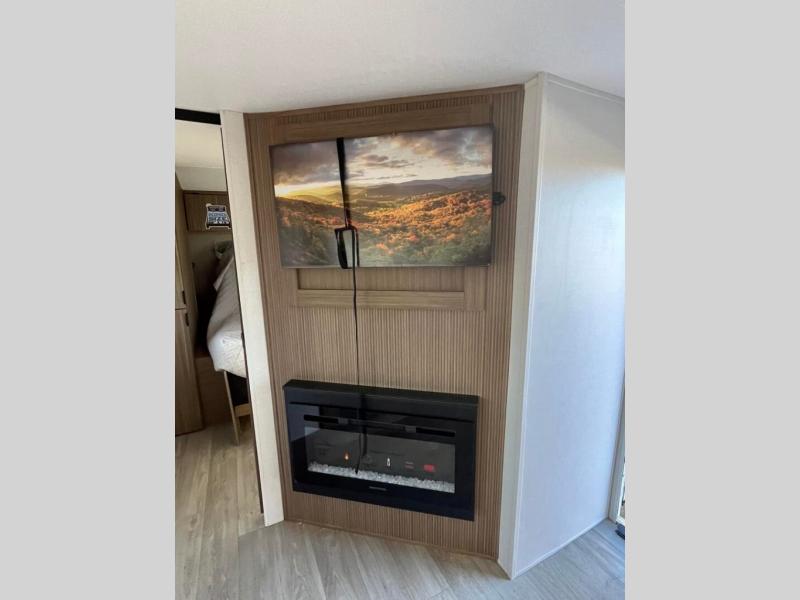 As you get away for the weekend to enjoy nature's beauty, you'll be so glad that you chose to bring this Salem Platinum travel trailer along! The full kitchen with its cooktop, microwave and walk-in pantry will allow you to prep meals whenever it is convenient for you, and the large slide that contains the functional Versa Flex table with chairs provides a place to dine or work. There is also an L-shaped sofa to relax on across from the fireplace! Your kids will be able to invite a friend or two because of the double-size bunks that are in the back, and since these bunks are right next to the full bathroom with a walk-in shower, your kids won't have to search far in the middle of the night.