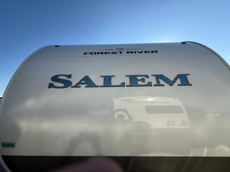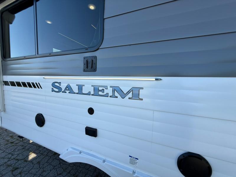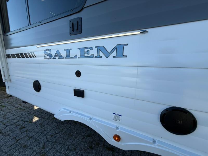 The Salem travel trailers are packed with hassle-free camping amenities and there are a variety of floorplans to choose from. The heated and enclosed Accessibelly will help protect against the elements and debris during transport, and the exterior retro/metal redesign is sure to be eye-catching! There are stylish roller shades inside, along with updated backsplash, elegant curtain rods and curtains, plus many more interior comforts! Choose a Salem travel trailer today for quality and value!
