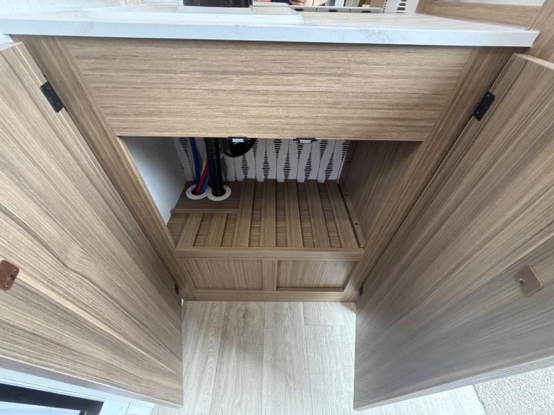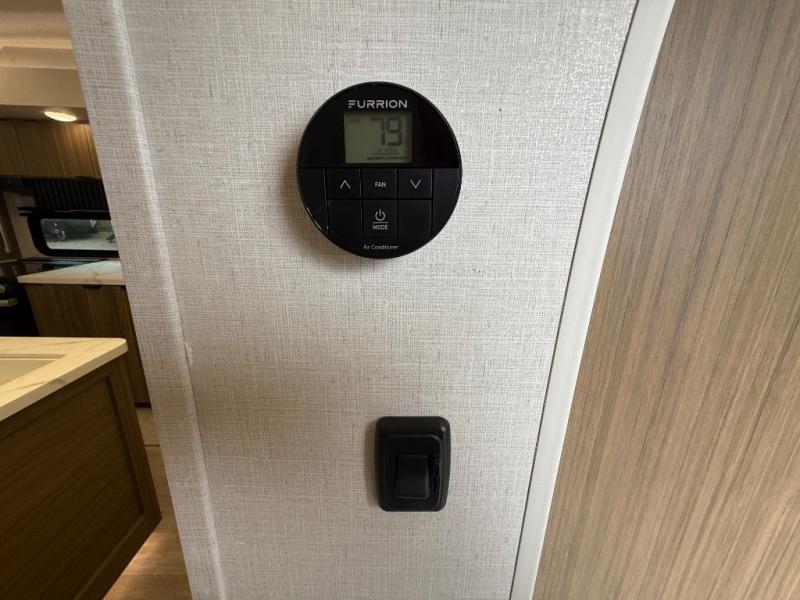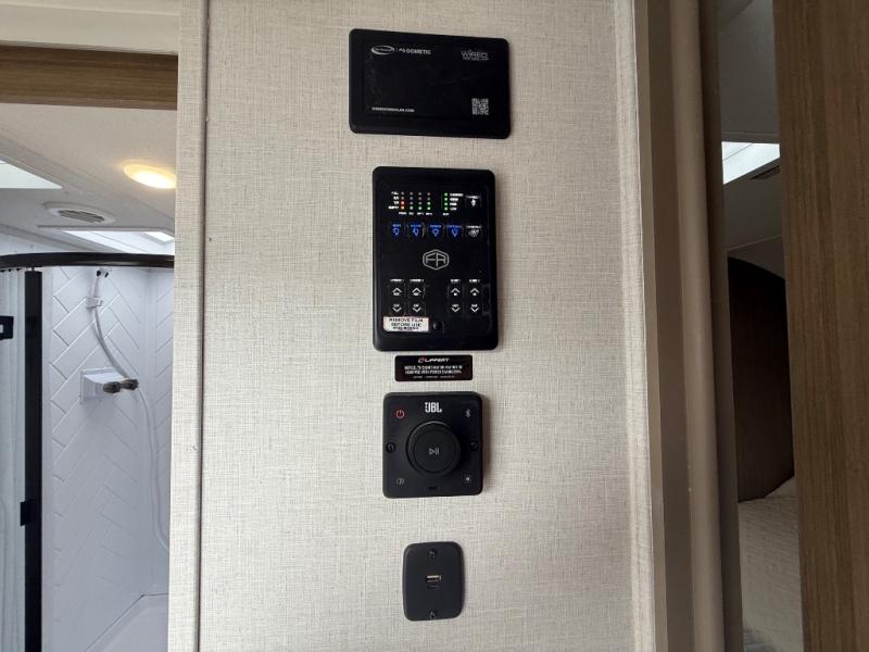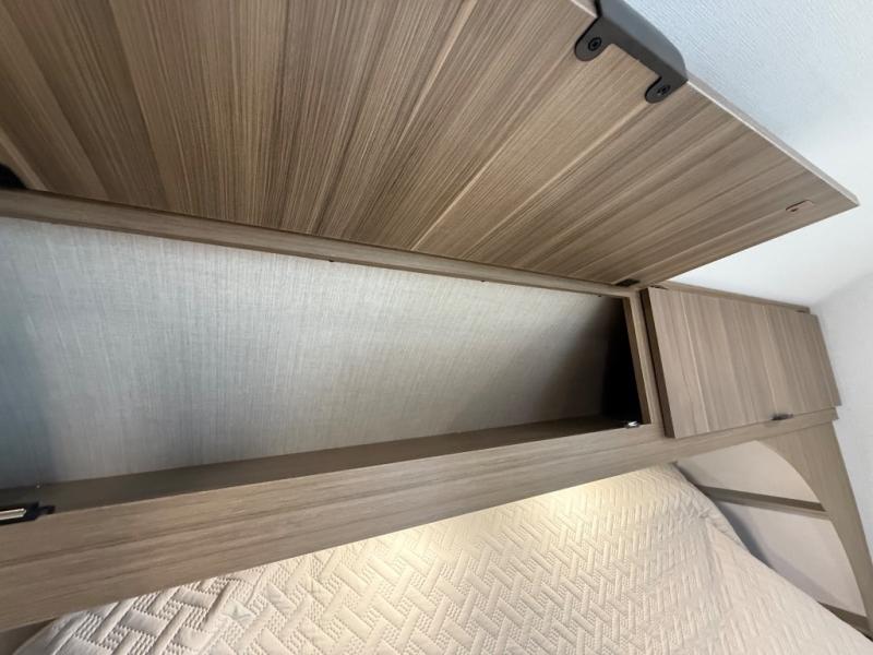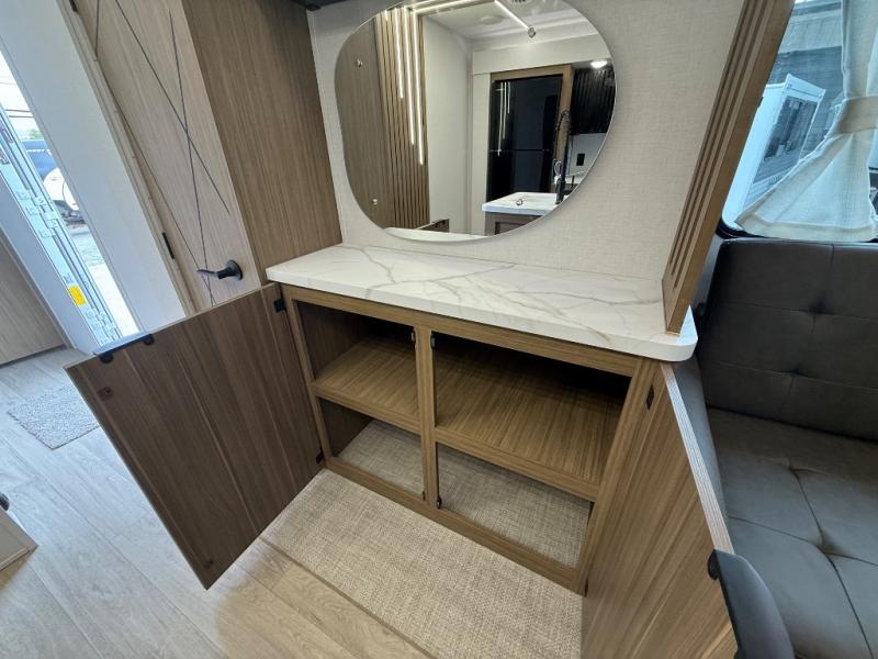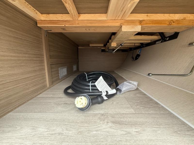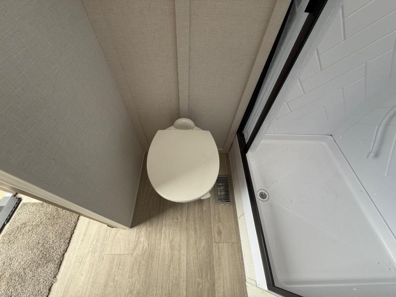 Find your zen int this spacious travel trailer for four! Once you've unloaded your gear, you can head inside to make lunch at the kitchen island with four chairs. An 80" trundle sofa provides additional seating space plus sleeping space for guests. You will love the rear custom recliners that are conveniently located next to the fireplace. The full bath is located towards the front next to the private bedroom so you can easily use the restroom at night, and you're sure to get a great night's rest on the custom king bed with Versa Tilt. This unit also includes washer and dryer prep, giving you the option to add these appliances.