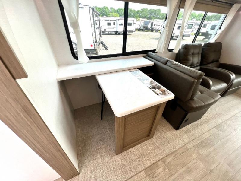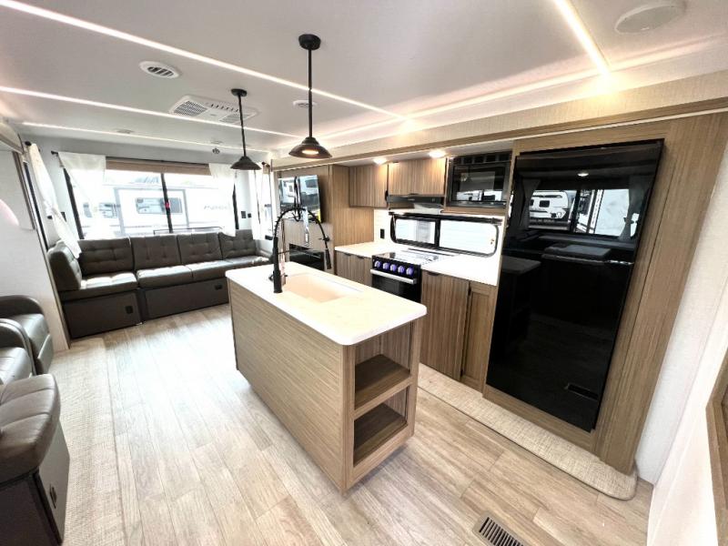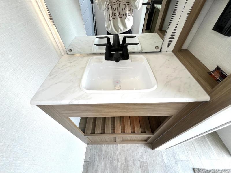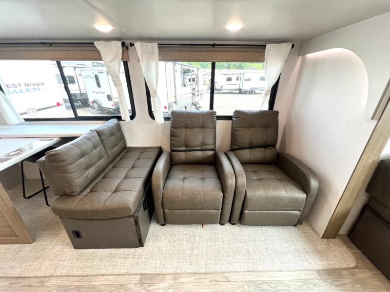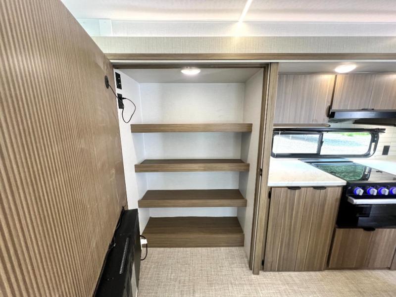 This Salem travel trailer is full of wonderful amenities that will make every trip enjoyable! The large opposing slides are what create an open and spacious environment so that you can sit back on the rear sofa, or dual lounge chairs while you soak in the ambiance from the fireplace at the entertainment center which has a hidden pantry behind it. You can also get some work done at the Versa Flex table or head outside where you will find two awnings for your protection and a pass-through storage compartment for your gear. Also, the wardrobe in the front private bedroom will certainly be helpful for storing those extra sweaters and hiking boots, and there is an washer and dryer prep option here if you want to add the ability to wash clothes!