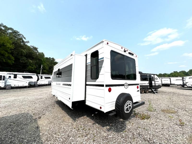 The Salem travel trailers are packed with hassle-free camping amenities! There are a variety of floorplans to choose from between three different regions. The heated and enclosed Accessibelly will help protect against the elements and debris during transport, and the exterior retro/metal redesign is sure to be eye-catching! There are stylish roller shades inside, along with updated backsplash, elegant curtain rods and curtains, plus many more interior comforts! Choose a Salem travel trailer today for quality and value!
