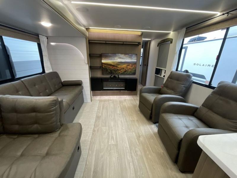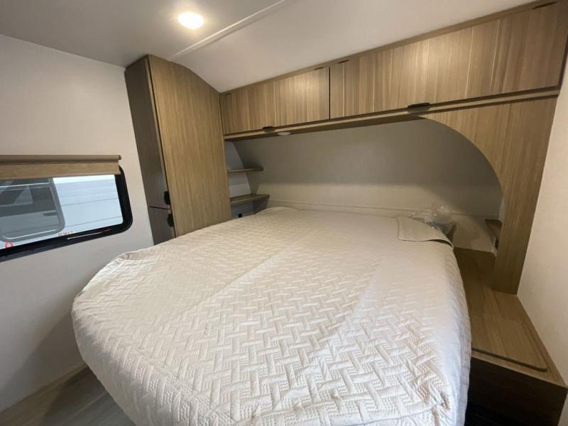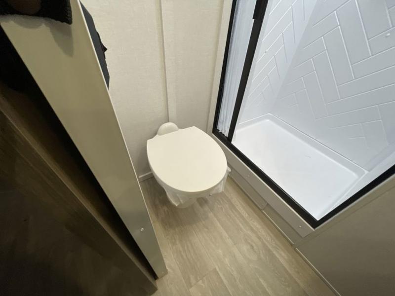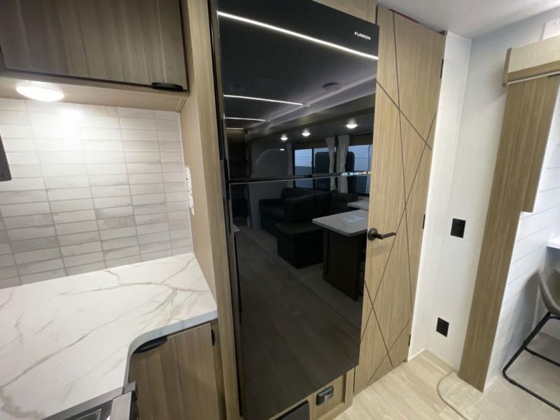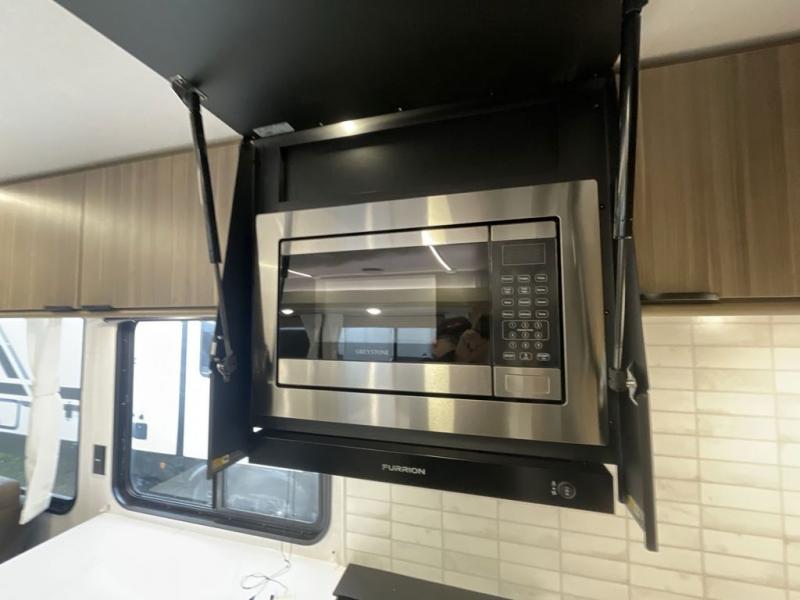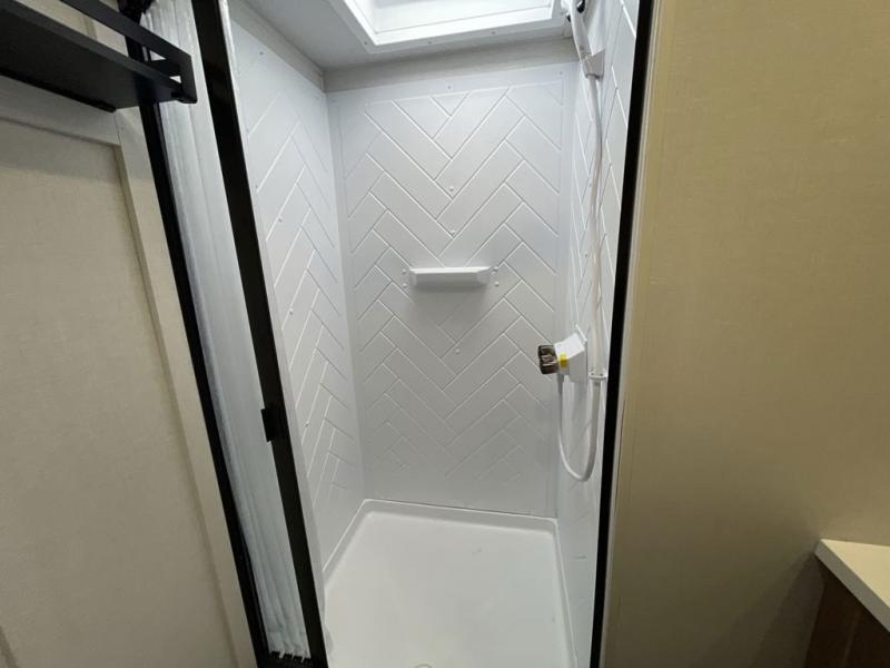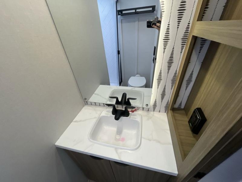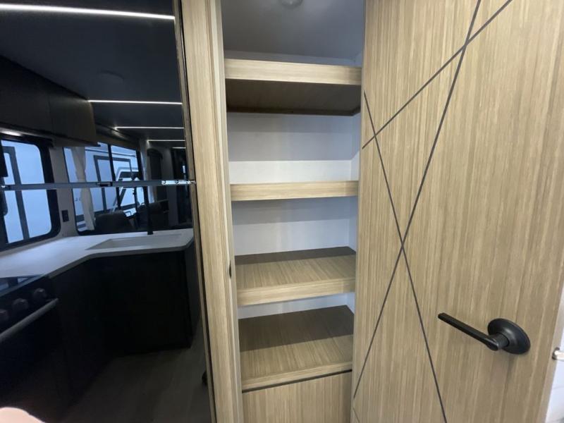 With a spacious kitchen and panoramic windows, this travel trailer is sure to stand out! The L-shaped sofa, dual lounge chairs, and Versa Flex table give you many seating options. You can either cook a delicious meal in the rear kitchen or you can use the exterior camp kitchen to breathe in some fresh air while you cook. After a fun-filled day, you can rinse off in the walk-in shower then head to the front private bedroom, grab your pajamas from the closet, and lay down on the custom king bed with Versa Tilt for a good night's rest!