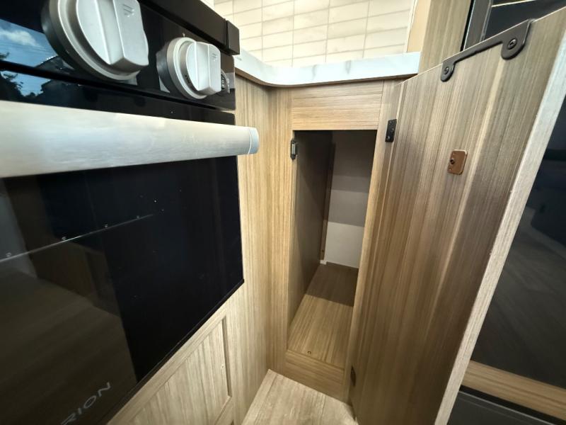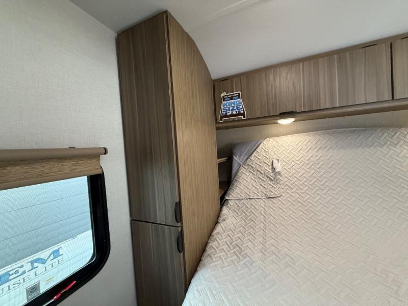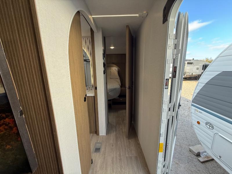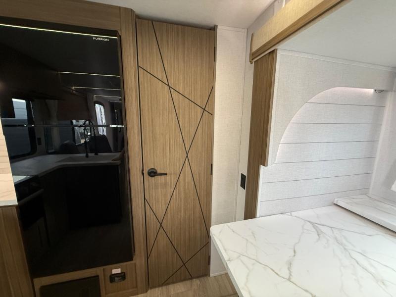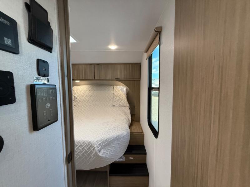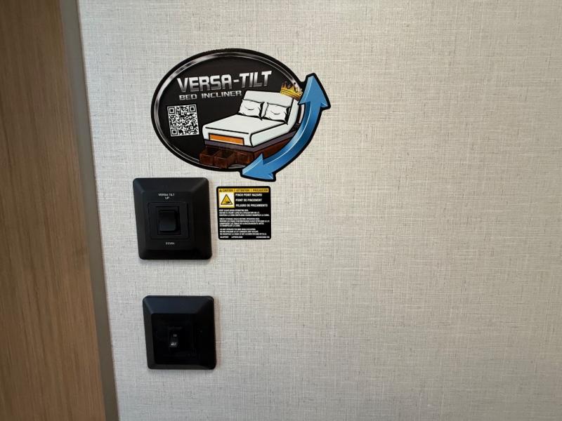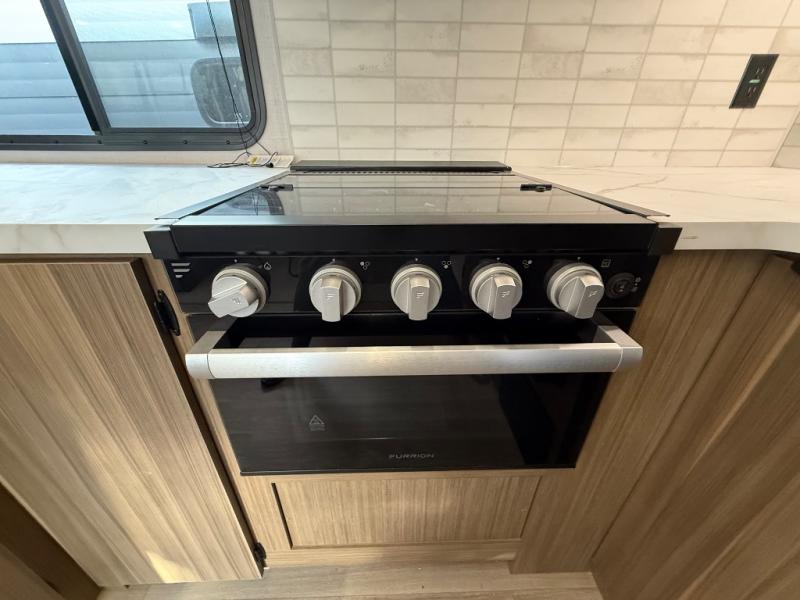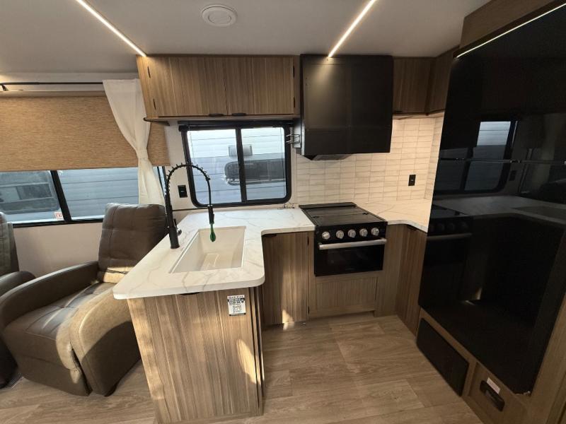 With a spacious kitchen and panoramic windows, this travel trailer is sure to stand out! The L-shaped sofa, dual lounge chairs, and Versa Flex table give you many seating options. You can either cook a delicious meal in the rear kitchen or you can use the exterior camp kitchen to breathe in some fresh air while you cook. After a fun-filled day, you can rinse off in the walk-in shower then head to the front private bedroom, grab your pajamas from the closet, and lay down on the custom king bed with Versa Tilt for a good night's rest!