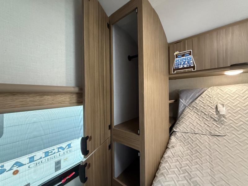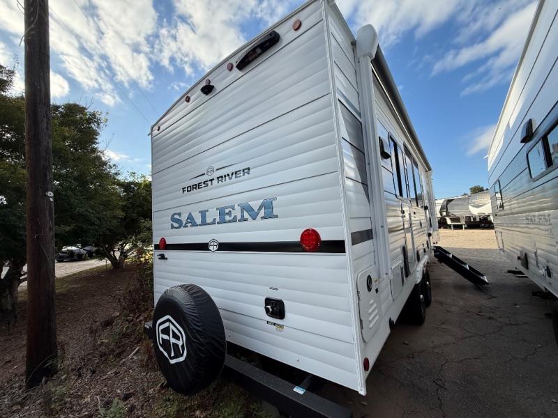 The Salem travel trailers are packed with hassle-free camping amenities! There are a variety of floorplans to choose from between three different regions. The heated and enclosed Accessibelly will help protect against the elements and debris during transport, and the exterior retro/metal redesign is sure to be eye-catching! There are stylish roller shades inside, along with updated backsplash, elegant curtain rods and curtains, plus many more interior comforts! Choose a Salem travel trailer today for quality and value!