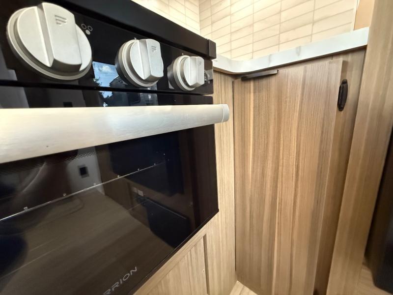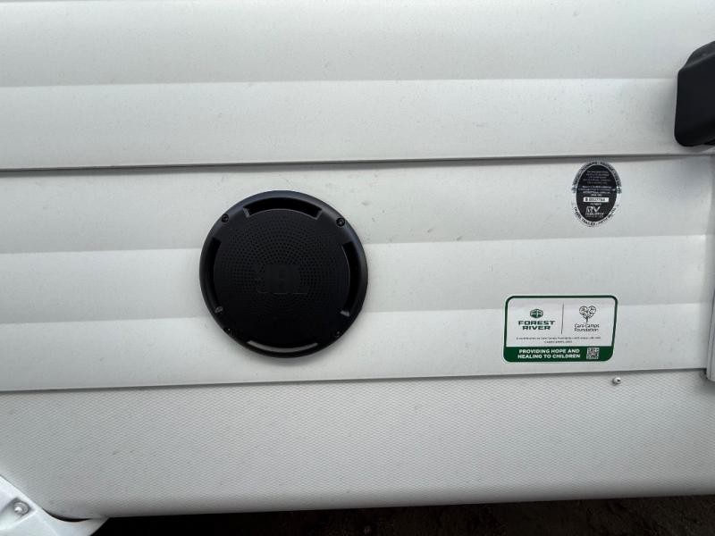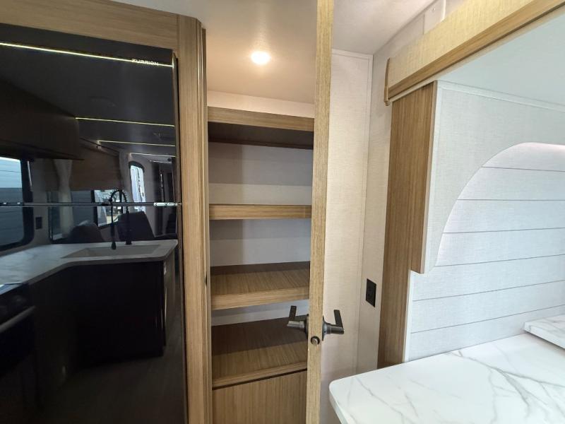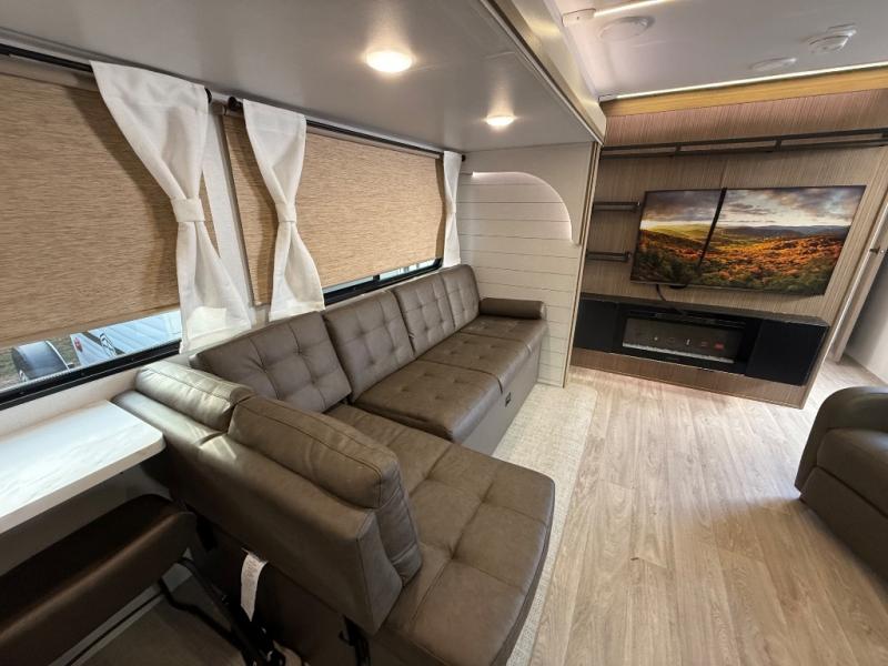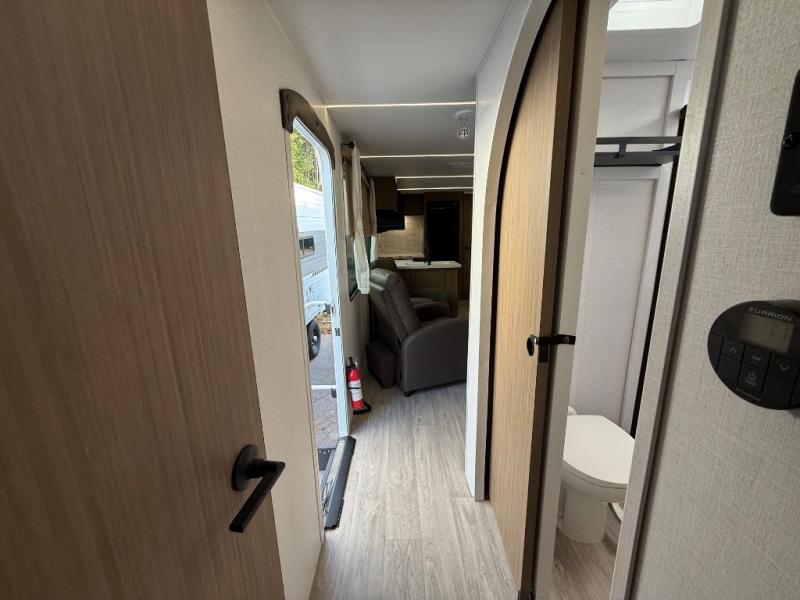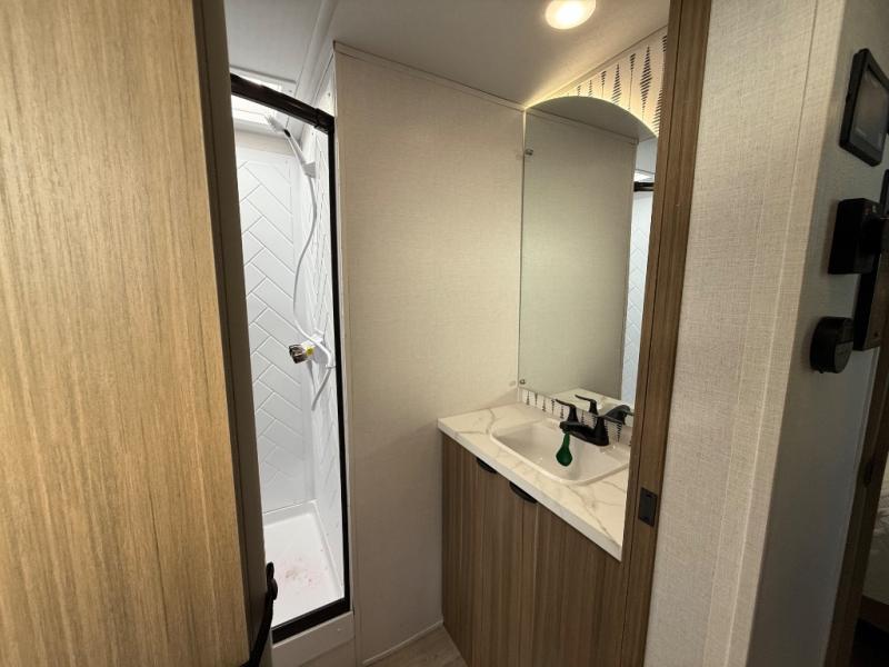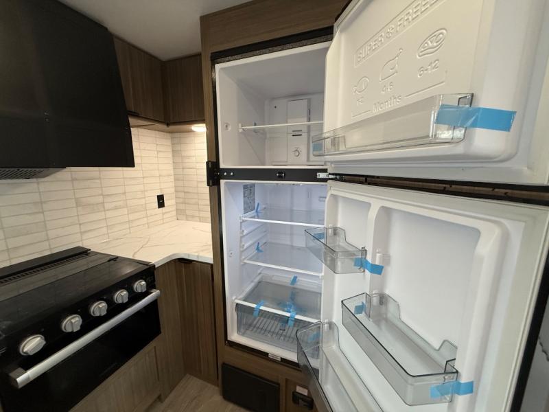 With a spacious kitchen and panoramic windows, this travel trailer is sure to stand out! The L-shaped sofa, dual lounge chairs, and Versa Flex table give you many seating options. You can either cook a delicious meal in the rear kitchen or you can use the exterior camp kitchen to breathe in some fresh air while you cook. After a fun-filled day, you can rinse off in the walk-in shower then head to the front private bedroom, grab your pajamas from the closet, and lay down on the custom king bed with Versa Tilt for a good night's rest!