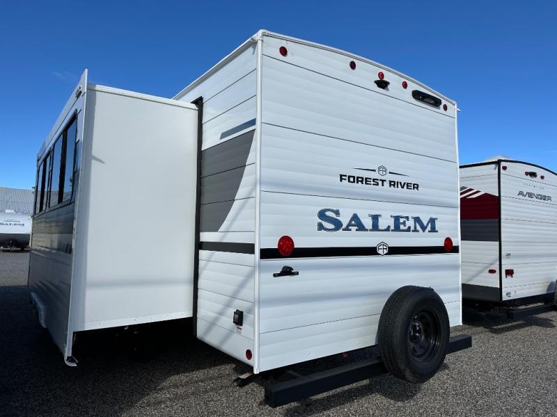 The Salem travel trailers are packed with hassle-free camping amenities! There are a variety of floorplans to choose from between three different regions. The heated and enclosed Accessibelly will help protect against the elements and debris during transport, and the exterior retro/metal redesign is sure to be eye-catching! There are stylish roller shades inside, along with updated backsplash, elegant curtain rods and curtains, plus many more interior comforts! Choose a Salem travel trailer today for quality and value!