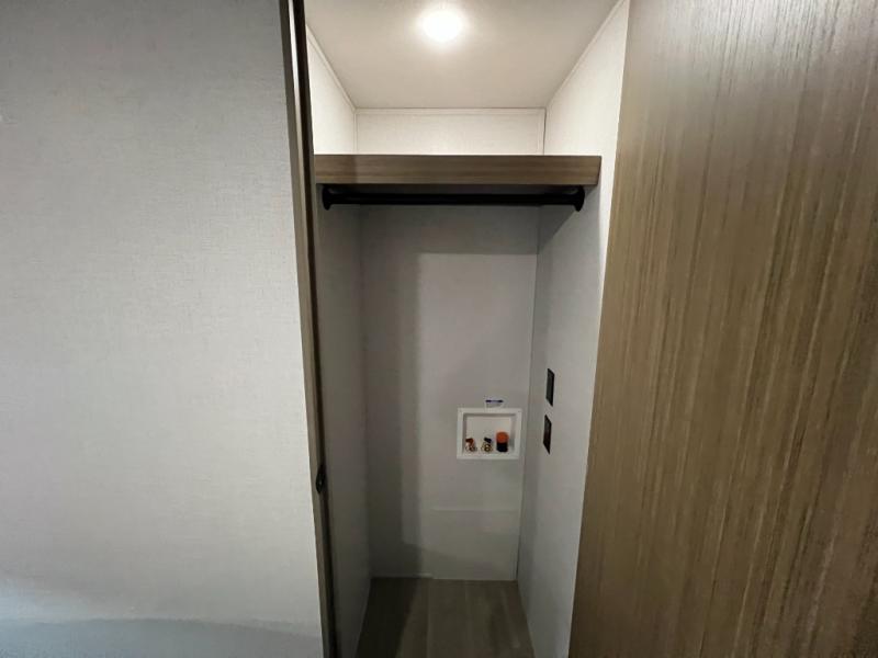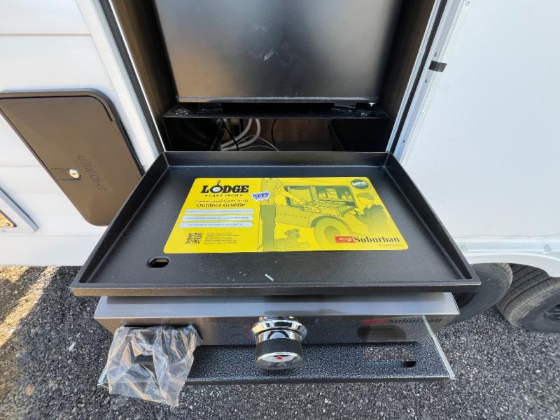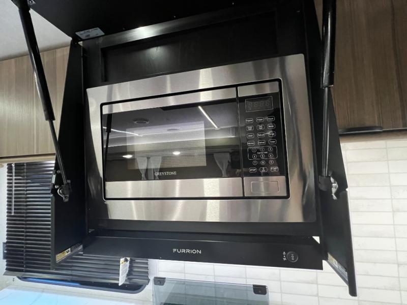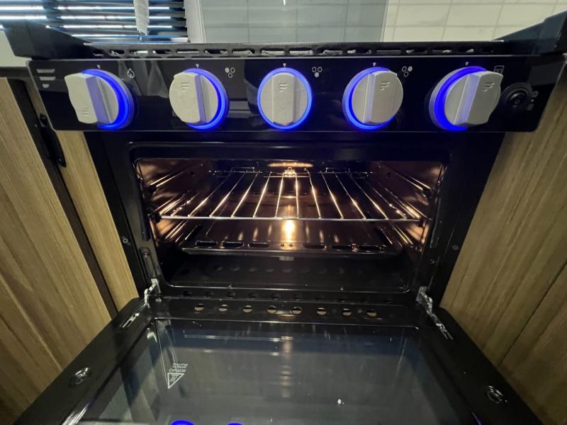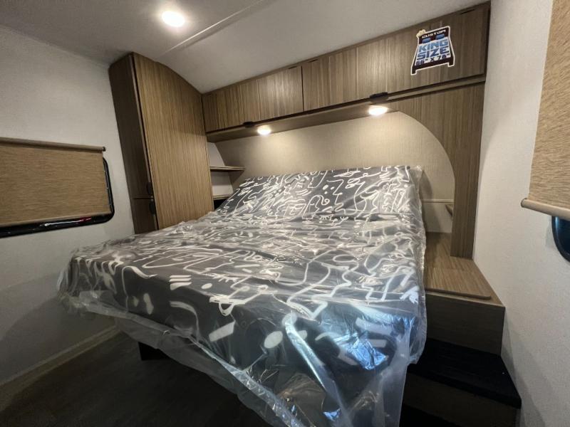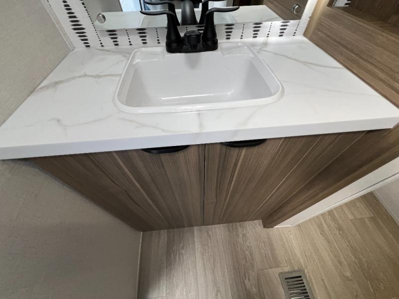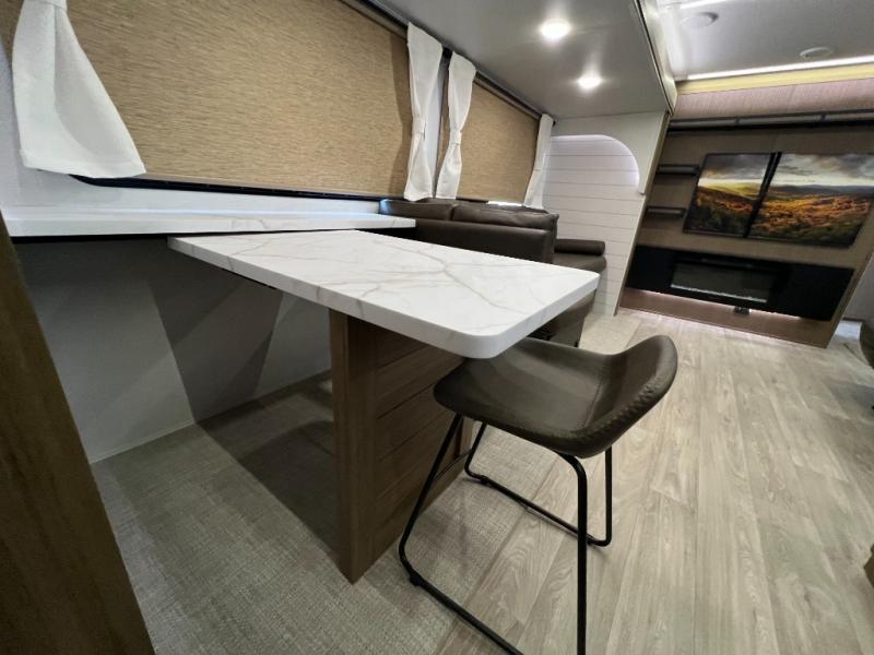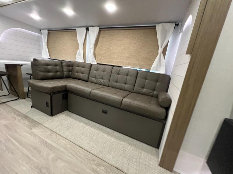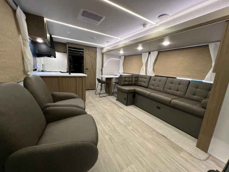 With a spacious kitchen and panoramic windows, this travel trailer is sure to stand out! The L-shaped Versa lounge, dual lounge chairs, and Versa Flex table give you many seating options. You can either cook a delicious meal in the rear kitchen, or you can use the exterior camp kitchen to breathe in some fresh air while you cook. After a fun-filled day, you can rinse off in the walk-in shower then head to the front private bedroom, grab your pajamas from the closet, and lay down on the custom king bed with Versa Tilt for a good night's rest!