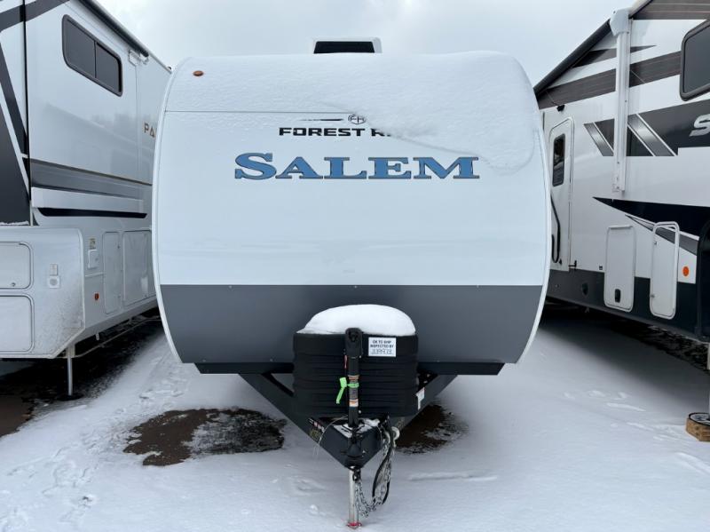 The Salem travel trailers are packed with hassle-free camping amenities! There are a variety of floorplans to choose from between three different regions. The heated and enclosed Accessibelly will help protect against the elements and debris during transport, and the exterior retro/metal redesign is sure to be eye-catching! There are stylish roller shades inside, along with updated backsplash, elegant curtain rods and curtains, plus many more interior comforts! Choose a Salem travel trailer today for quality and value!