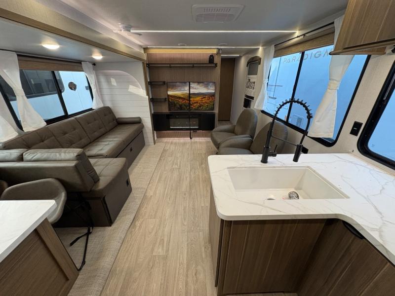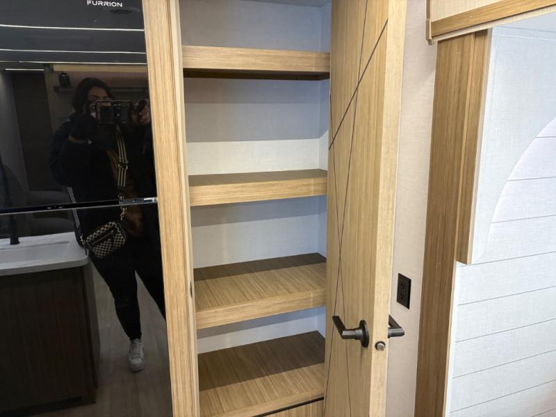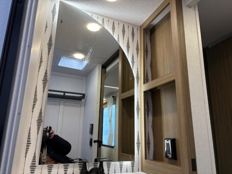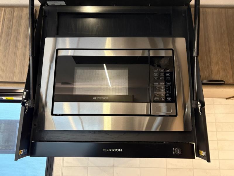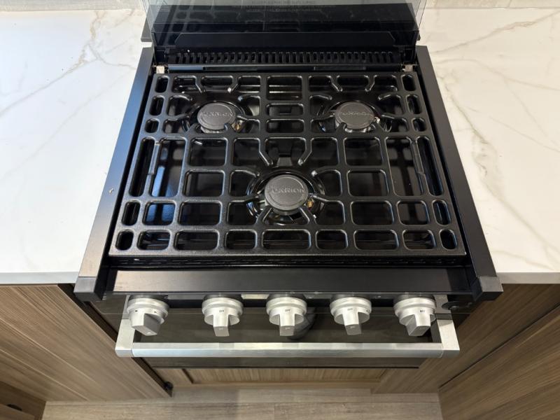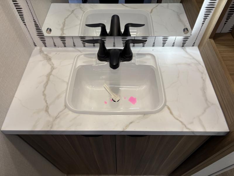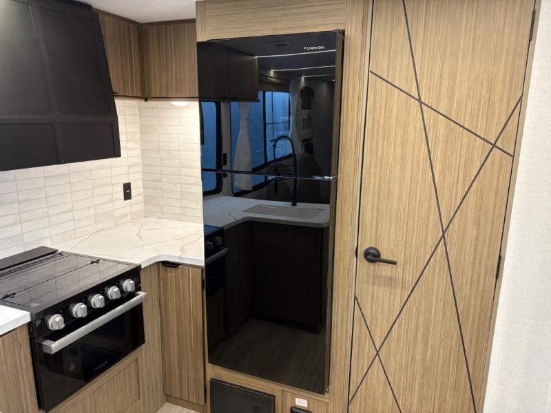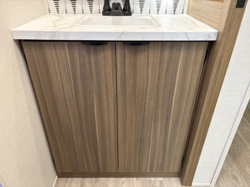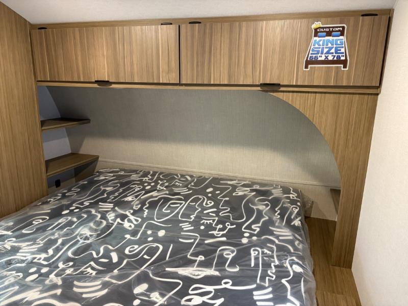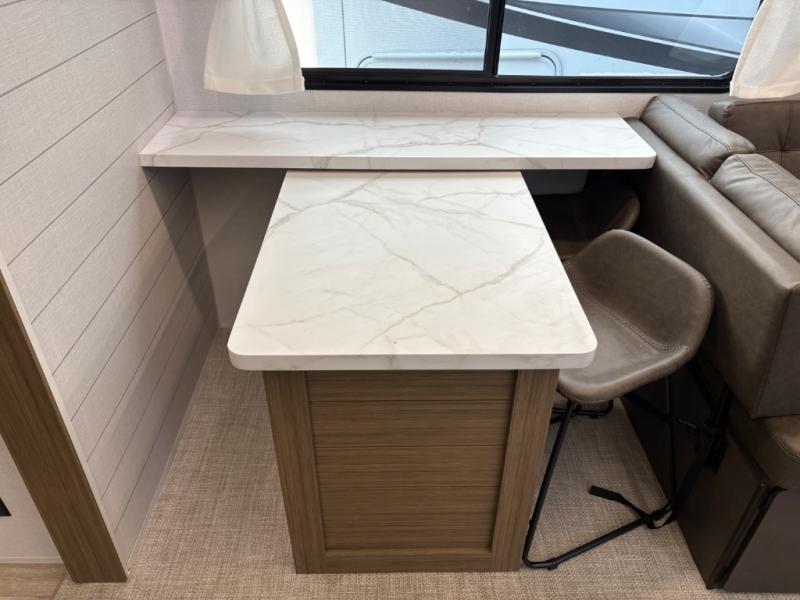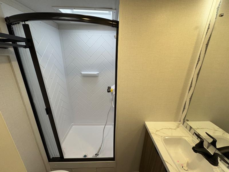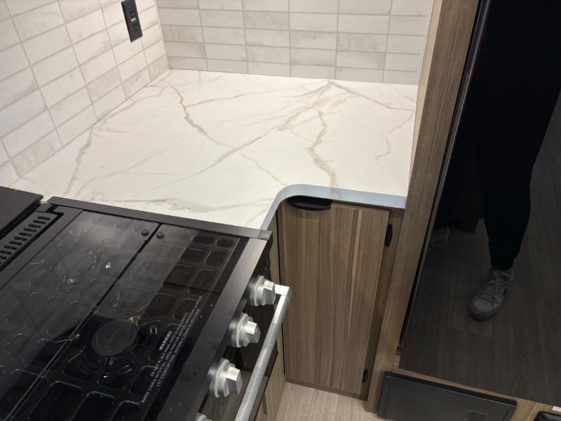 With a spacious kitchen and panoramic windows, this travel trailer is sure to stand out! The L-shaped sofa, dual lounge chairs, and Versa Flex table give you many seating options. You can either cook a delicious meal in the rear kitchen or you can use the exterior camp kitchen to breathe in some fresh air while you cook. After a fun-filled day, you can rinse off in the walk-in shower then head to the front private bedroom, grab your pajamas from the closet, and lay down on the custom king bed with Versa Tilt for a good night's rest!