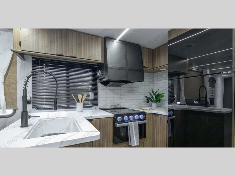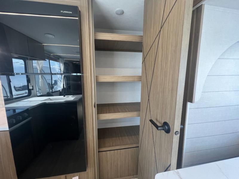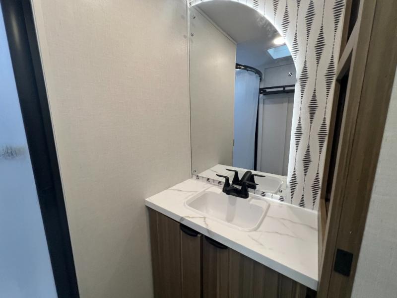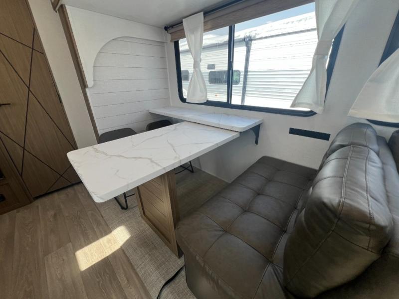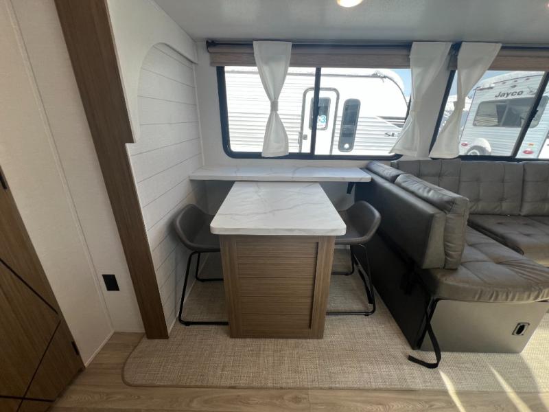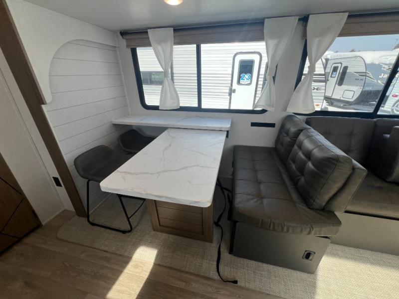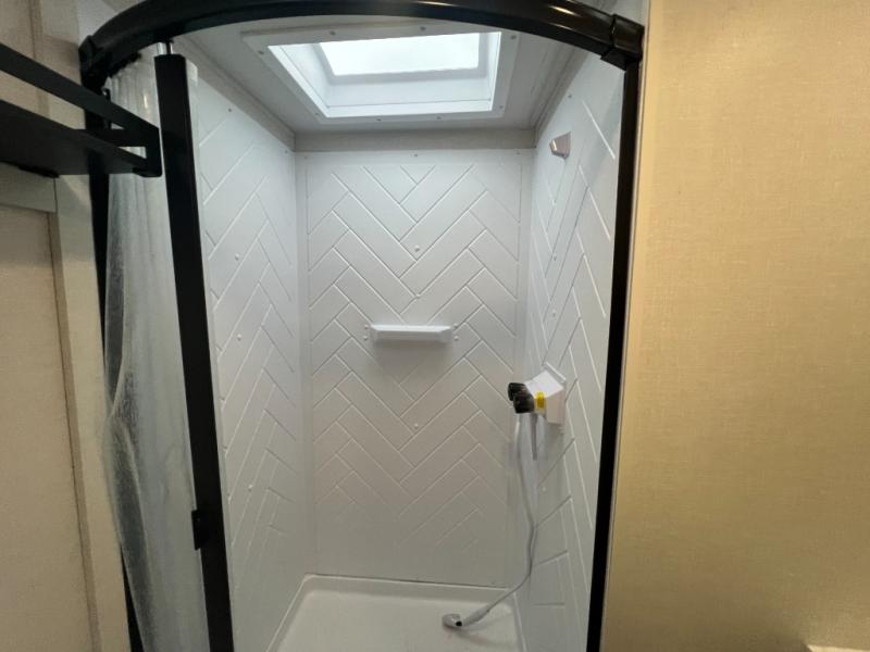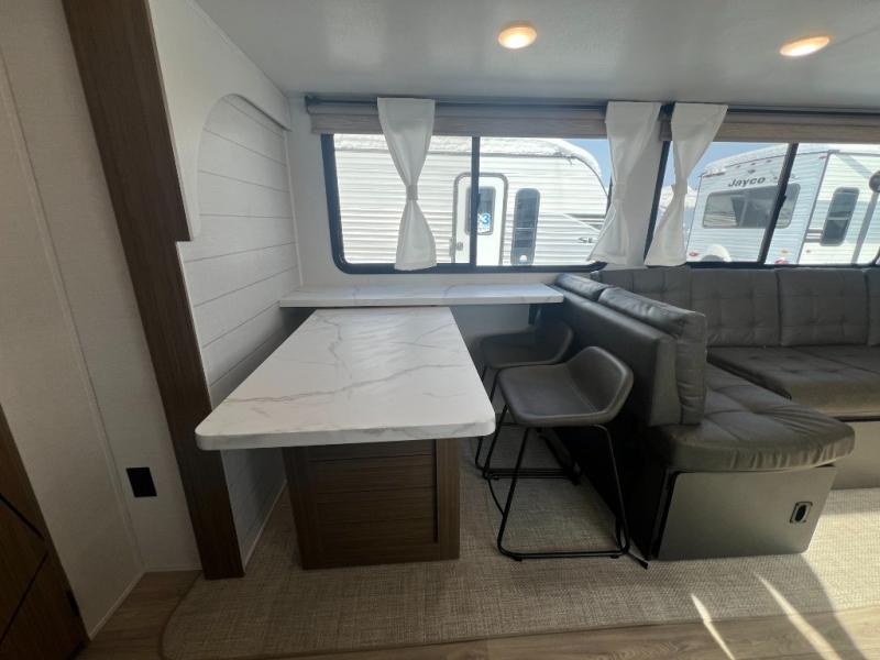 With a spacious kitchen and panoramic windows, this travel trailer is sure to stand out! The L-shaped Versa lounge, dual lounge chairs, and Versa Flex table give you many seating options. You can either cook a delicious meal in the rear kitchen, or you can use the exterior camp kitchen to breathe in some fresh air while you cook. After a fun-filled day, you can rinse off in the walk-in shower then head to the front private bedroom, grab your pajamas from the closet, and lay down on the custom king bed with Versa Tilt for a good night's rest!