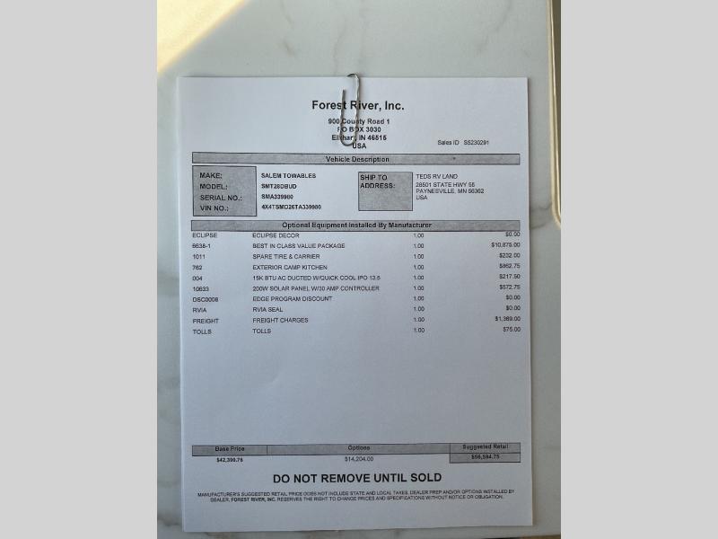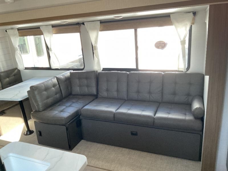 As you get away for the weekend to enjoy nature's beauty, you'll be so glad that you chose to bring this Salem travel trailer along! The full kitchen with its cooktop, overhead microwave oven, oversized refrigerator, and walk-in pantry will allow you to prep meals whenever it is convenient for you. The large slide that contains the L-shaped versa lounge and Versa Flex table will deliver extra space to the interior so that you don't feel cramped. Your kids will be able to invite a friend or two because of the double-size bunks that are in the back, and since these bunks are right next to the full bathroom with a walk-in shower, your kids won't have to go far in the middle of the night. You might also like to add the optional exterior kitchen if you enjoy cooking outdoors!