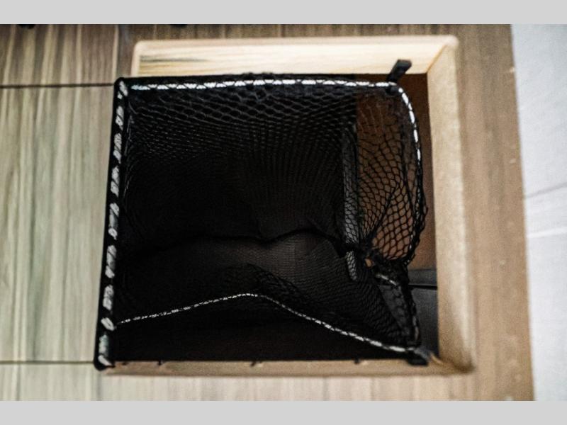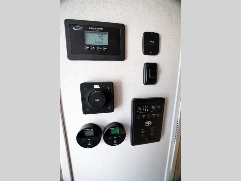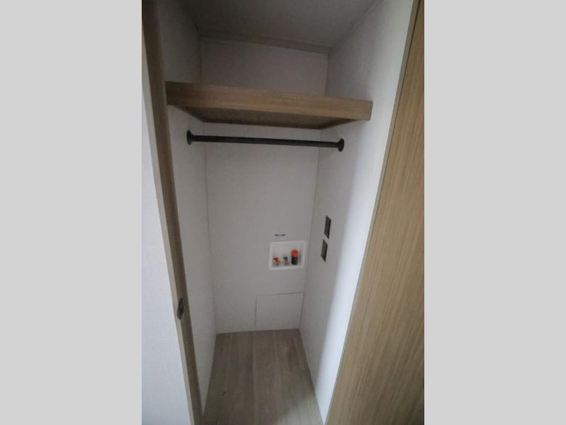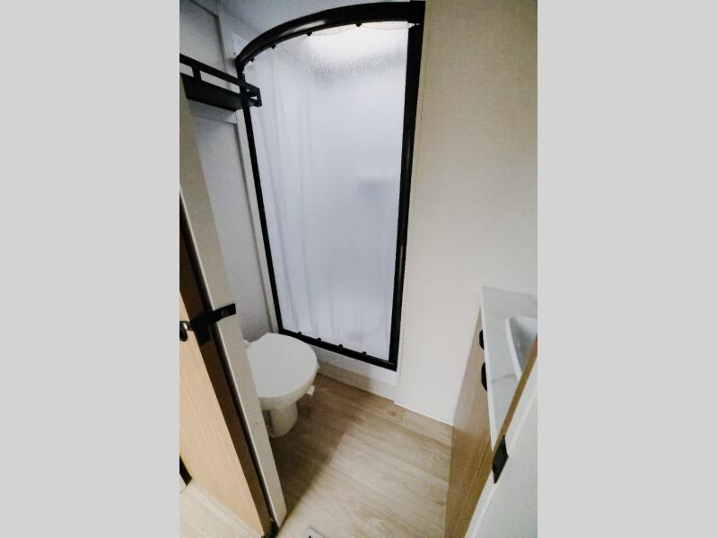 The large slide in this travel trailer is ultra versatile since it features a hidden bunkhouse within it, along with the refrigerator and pantry plus a desk. You are sure to appreciate the rear kitchen that includes wrap-around counter space and chairs, plus a flip-up desk if you need to get some work done. The full bath will let you clean up daily without having to use the camp's facilities, and the front private bedroom includes a custom king bed with Versa Tilt so you can read in bed at night. There is also a wardrobe and overhead cabinet plus a closet with washer and dryer prep if you choose to add these appliances.
