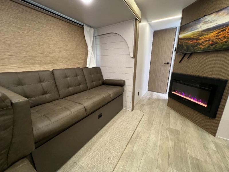 It won't be long before your family asks you to plan another trip with this Salem travel trailer! The 18' awning lets you have fun playing games outside while you stay protected from the sun or rain, and the interior will certainly provide loads of excitement with great features. You will appreciate finding an oversized refrigerator and walk-in pantry in the kitchen, a front private bedroom with a Versa Tilt custom king bed, and a fireplace across from the Versa Lounge which happens to be the ultimate in furniture versatility. Your guests or the kids are sure to love their own space in the private bunkhouse with ample sleeping space!