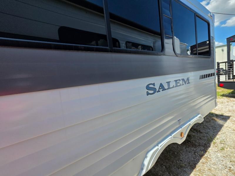 The Salem travel trailers are packed with hassle-free camping amenities! There are a variety of floorplans to choose from between three different regions. The heated and enclosed Accessibelly will help protect against the elements and debris during transport, and the exterior retro/metal redesign is sure to be eye-catching! There are stylish roller shades inside, along with updated backsplash, elegant curtain rods and curtains, plus many more interior comforts! Choose a Salem travel trailer today for quality and value!