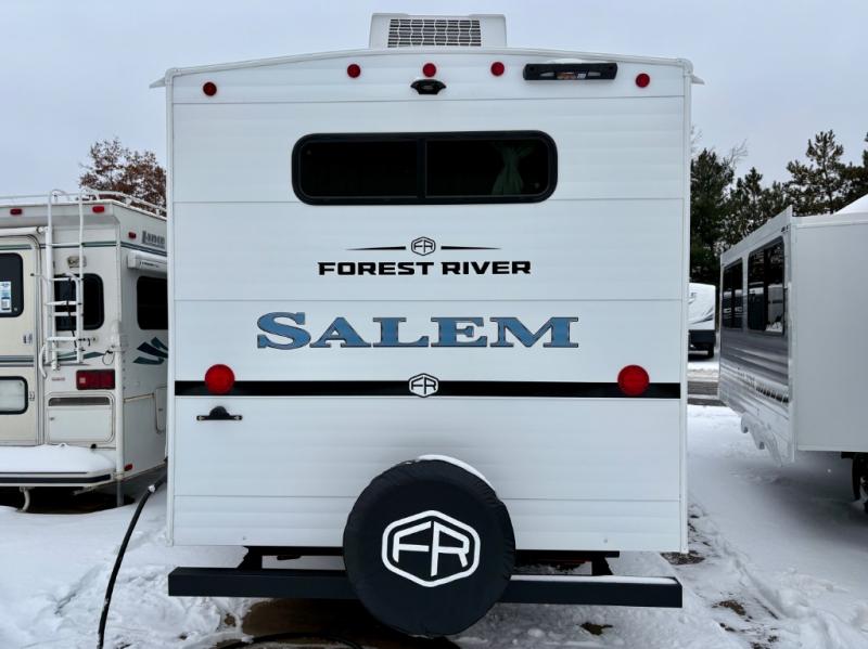 The Salem travel trailers are packed with hassle-free camping amenities! There are a variety of floorplans to choose from between three different regions. The heated and enclosed Accessibelly will help protect against the elements and debris during transport, and the exterior retro/metal redesign is sure to be eye-catching! There are stylish roller shades inside, along with updated backsplash, elegant curtain rods and curtains, plus many more interior comforts! Choose a Salem travel trailer today for quality and value!