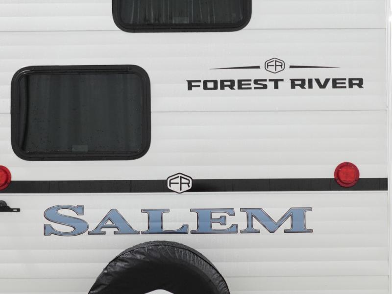 The Salem travel trailers are packed with hassle-free camping amenities and there are a variety of floorplans to choose from. The heated and enclosed Accessibelly will help protect against the elements and debris during transport, and the exterior retro/metal redesign is sure to be eye-catching! There are stylish roller shades inside, along with updated backsplash, elegant curtain rods and curtains, plus many more interior comforts! Choose a Salem travel trailer today for quality and value!