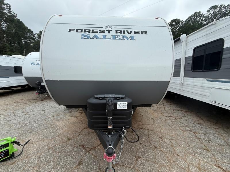 The Salem travel trailers are packed with hassle-free camping amenities and there are a variety of floorplans to choose from. The heated and enclosed Accessibelly will help protect against the elements and debris during transport, and the exterior retro/metal redesign is sure to be eye-catching! There are stylish roller shades inside, along with updated backsplash, elegant curtain rods and curtains, plus many more interior comforts! Choose a Salem travel trailer today for quality and value!