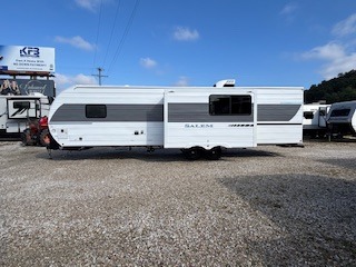 The Salem travel trailers are packed with hassle-free camping amenities and there are a variety of floorplans to choose from. The heated and enclosed Accessibelly will help protect against the elements and debris during transport, and the exterior retro/metal redesign is sure to be eye-catching! There are stylish roller shades inside, along with updated backsplash, elegant curtain rods and curtains, plus many more interior comforts! Choose a Salem travel trailer today for quality and value!