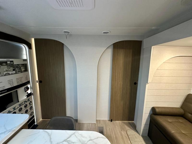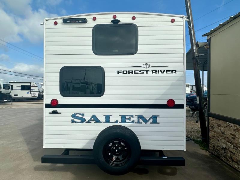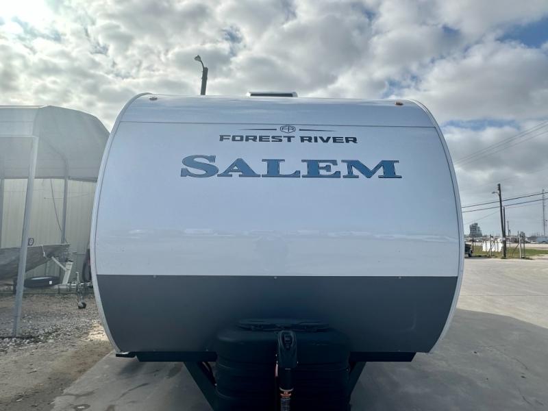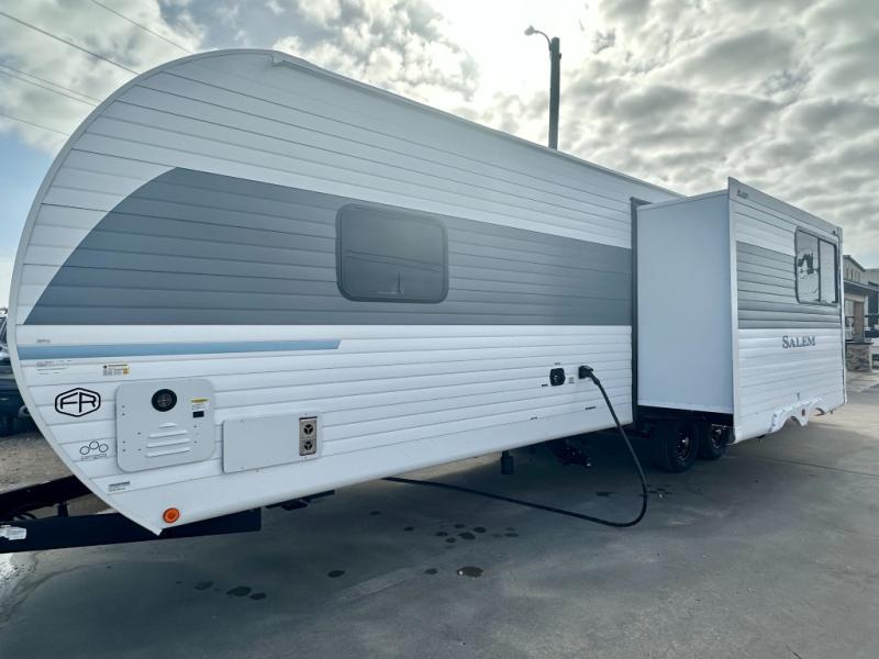 The Salem travel trailers are packed with hassle-free camping amenities and there are a variety of floorplans to choose from. The heated and enclosed Accessibelly will help protect against the elements and debris during transport, and the exterior retro/metal redesign is sure to be eye-catching! There are stylish roller shades inside, along with updated backsplash, elegant curtain rods and curtains, plus many more interior comforts! Choose a Salem travel trailer today for quality and value!
