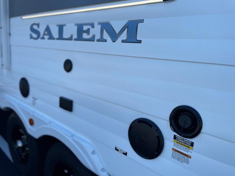The Salem travel trailers are packed with hassle-free camping amenities! There are a variety of floorplans to choose from between three different regions. The heated and enclosed Accessibelly will help protect against the elements and debris during transport, and the exterior retro/metal redesign is sure to be eye-catching! There are stylish roller shades inside, along with updated backsplash, elegant curtain rods and curtains, plus many more interior comforts! Choose a Salem travel trailer today for quality and value!