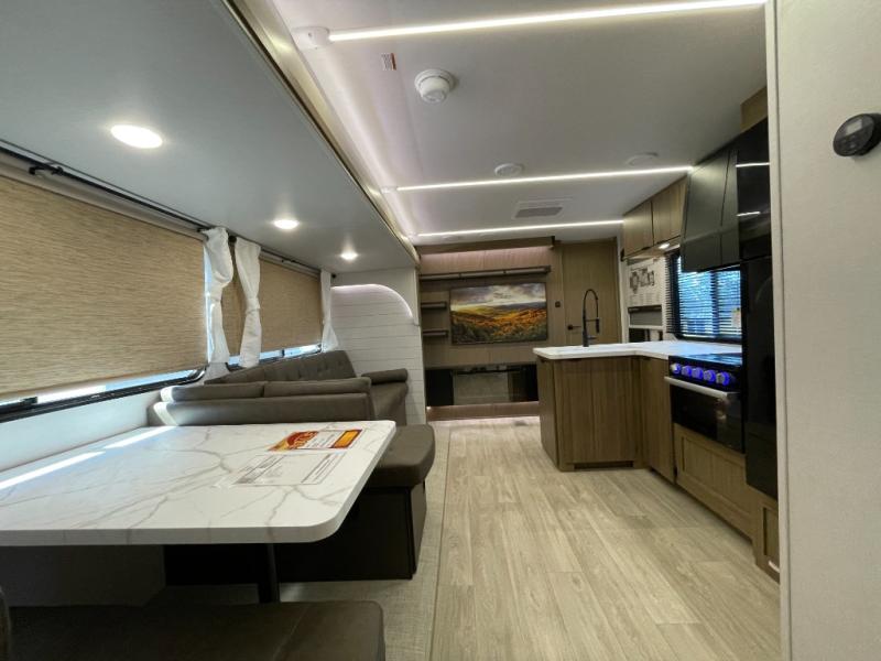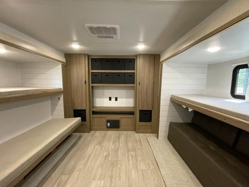 The rear private bunkhouse in this Salem travel trailer is super accommodating for your kids or your overnight guests! It has two opposing slides which provide extra floor space and a full-width closet/entertainment center which delivers extra space for backpacks and tennis shoes. The front private bedroom will be perfect for you with its custom king bed and dual closets, and any additional guests can sleep on the L-shaped versa lounge. There is also a Versa Flex table here to dine at or get some work done. Everyone will enjoy their own space when it's time to freshen up in the full bath with a walk-in shower, and the chef of the group will have all the appliances needed to make meals each day. And don't forget about the outdoor kitchen for outdoor fun!