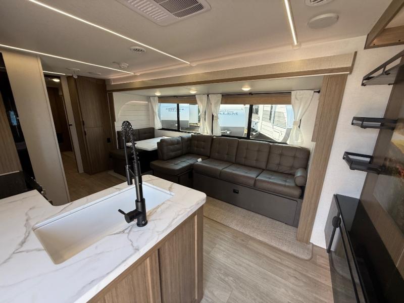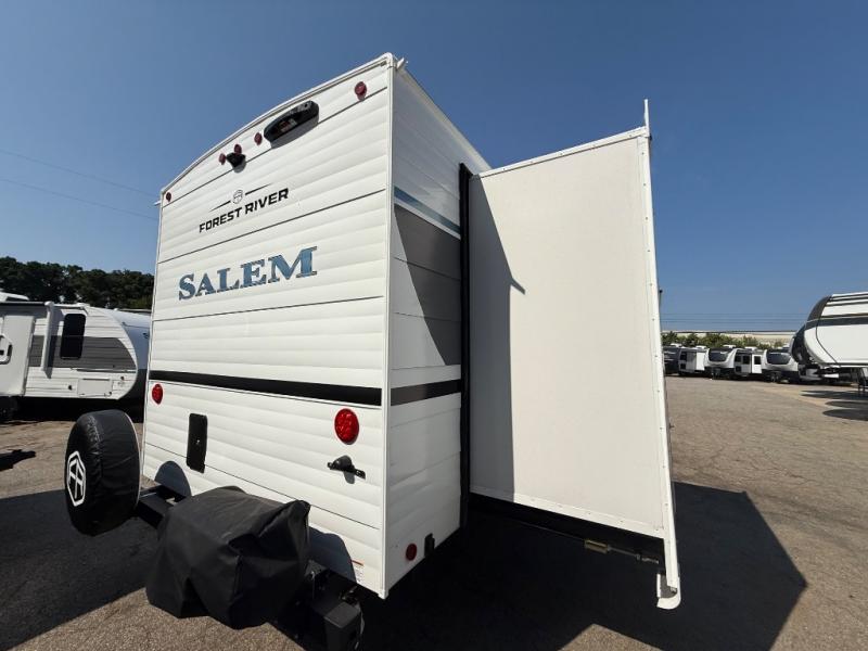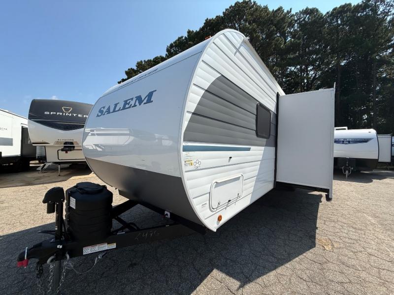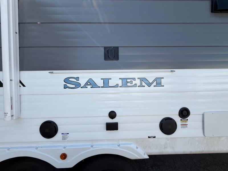 The Salem travel trailers are packed with hassle-free camping amenities! There are a variety of floorplans to choose from between three different regions. The heated and enclosed Accessibelly will help protect against the elements and debris during transport, and the exterior retro/metal redesign is sure to be eye-catching! There are stylish roller shades inside, along with updated backsplash, elegant curtain rods and curtains, plus many more interior comforts! Choose a Salem travel trailer today for quality and value!
