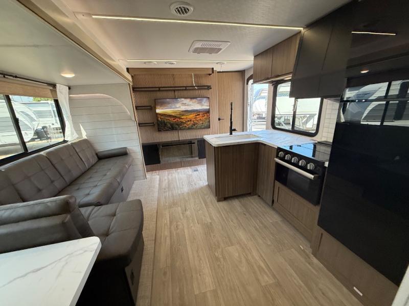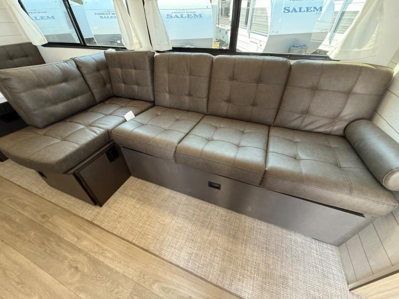 The rear private bunkhouse in this Salem travel trailer is super accommodating for your kids or your overnight guests! It has two opposing slides which provide extra floor space and a full-width closet/entertainment center which delivers extra space for backpacks and tennis shoes. The front private bedroom will be perfect for you with its custom king bed and dual closets, and any additional guests can sleep on the L-shaped versa lounge. There is also a Versa Flex table here to dine at or get some work done. Everyone will enjoy their own space when it's time to freshen up in the full bath with a walk-in shower, and the chef of the group will have all the appliances needed to make meals each day. And don't forget about the outdoor kitchen for outdoor fun!