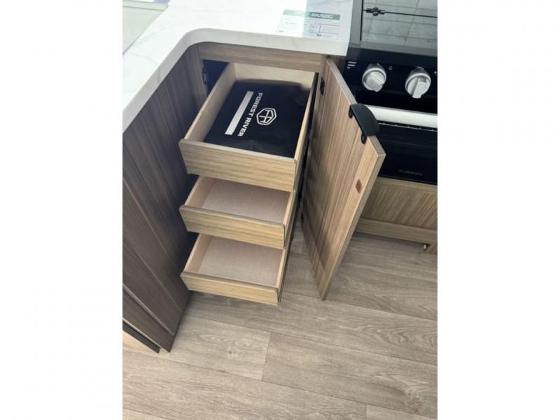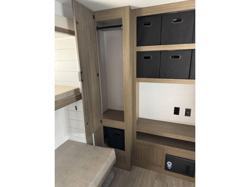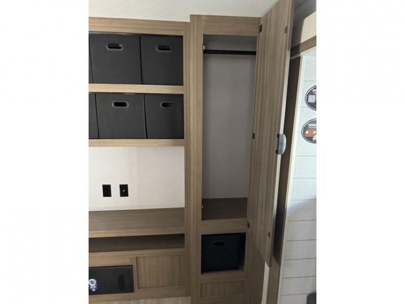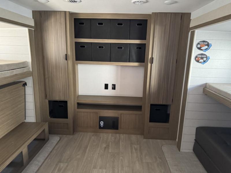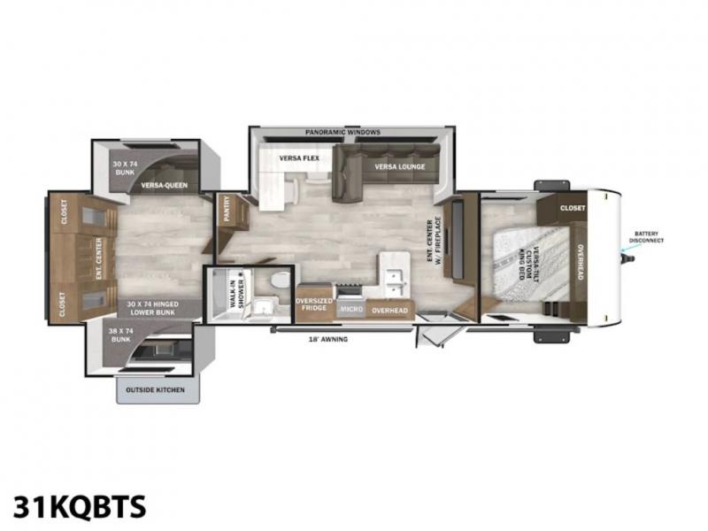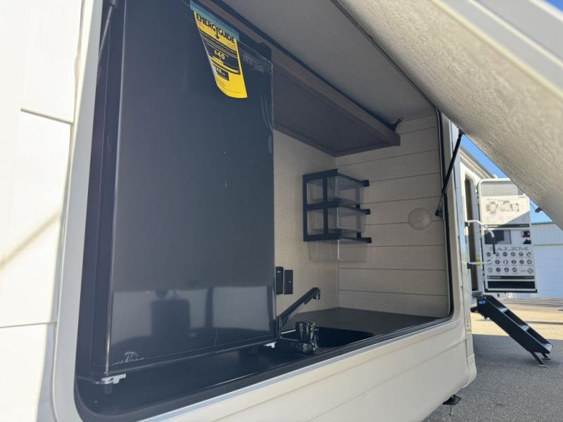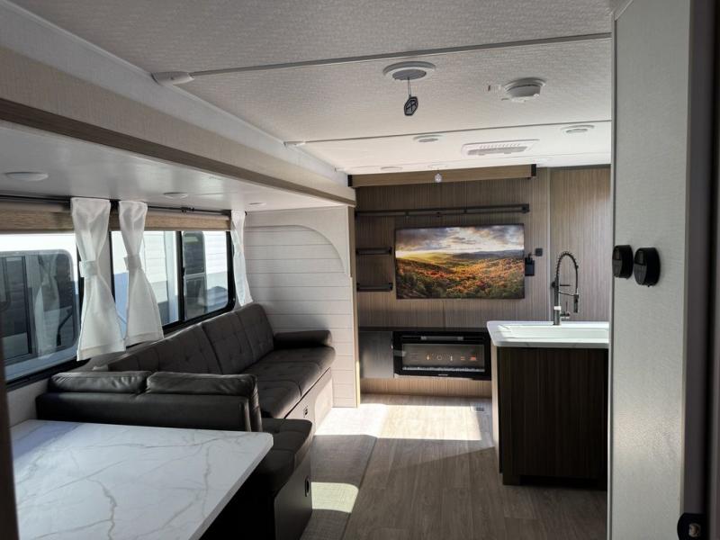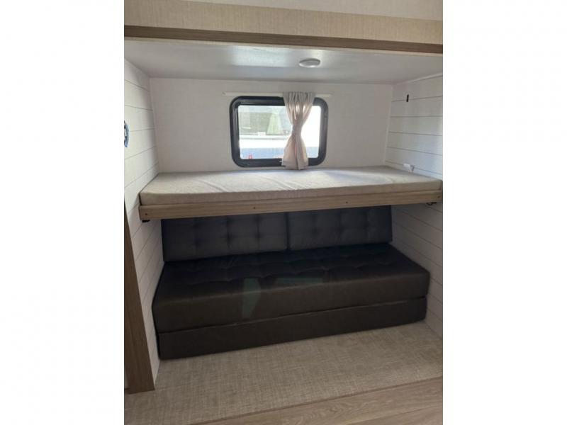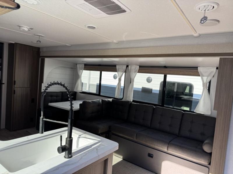 The rear private bunkhouse in this Salem travel trailer is super accommodating for your kids or your overnight guests! It has two opposing slides which provide extra floor space and a full-width closet/entertainment center which delivers extra space for backpacks and tennis shoes. The front private bedroom will be perfect for you with its custom king bed and dual closets, and any additional guests can sleep on the L-shaped versa lounge. There is also a Versa Flex table here to dine at or get some work done. Everyone will enjoy their own space when it's time to freshen up in the full bath with a walk-in shower, and the chef of the group will have all the appliances needed to make meals each day. And don't forget about the outdoor kitchen for outdoor fun!
