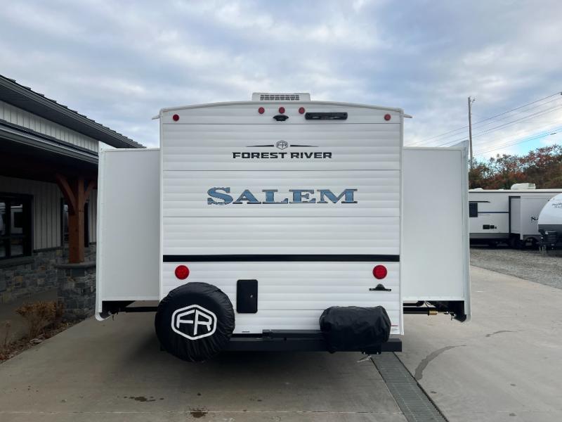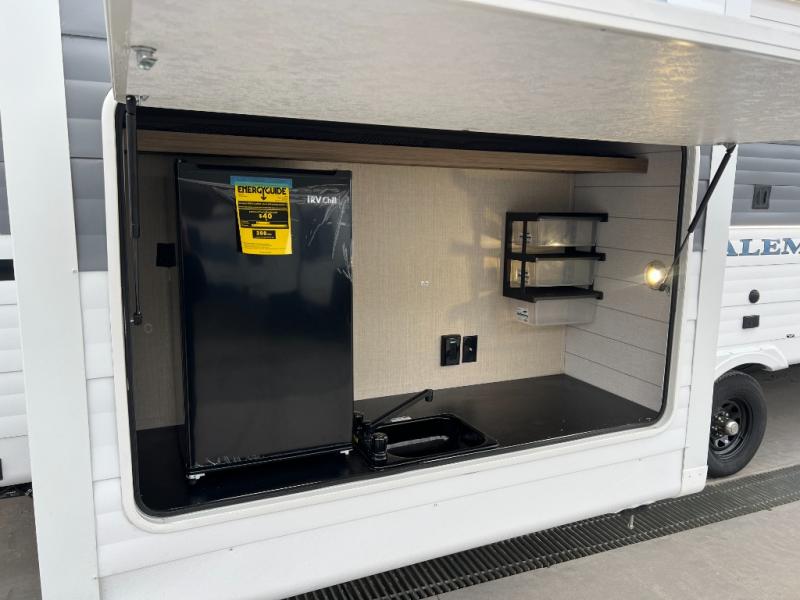 The Salem travel trailers are packed with hassle-free camping amenities! There are a variety of floorplans to choose from between three different regions. The heated and enclosed Accessibelly will help protect against the elements and debris during transport, and the exterior retro/metal redesign is sure to be eye-catching! There are stylish roller shades inside, along with updated backsplash, elegant curtain rods and curtains, plus many more interior comforts! Choose a Salem travel trailer today for quality and value!