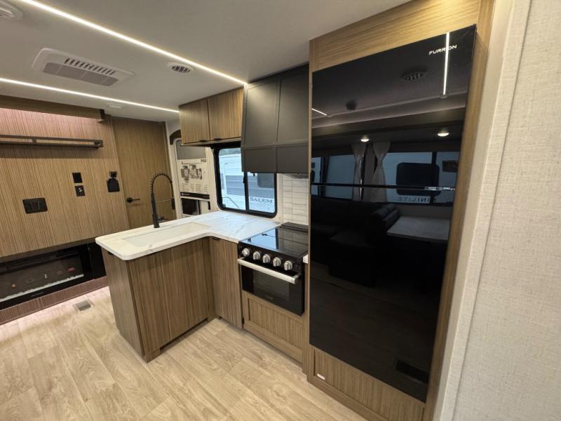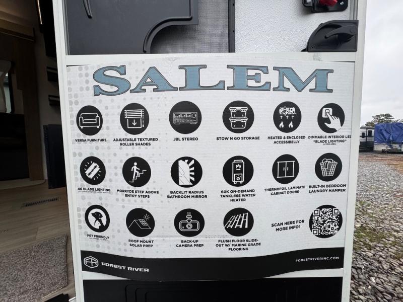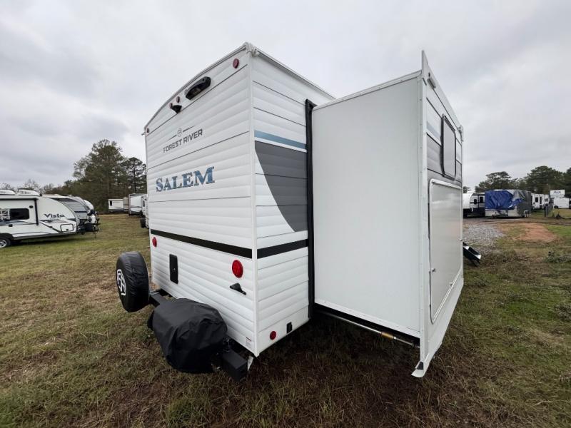 The Salem travel trailers are packed with hassle-free camping amenities! There are a variety of floorplans to choose from between three different regions. The heated and enclosed Accessibelly will help protect against the elements and debris during transport, and the exterior retro/metal redesign is sure to be eye-catching! There are stylish roller shades inside, along with updated backsplash, elegant curtain rods and curtains, plus many more interior comforts! Choose a Salem travel trailer today for quality and value!