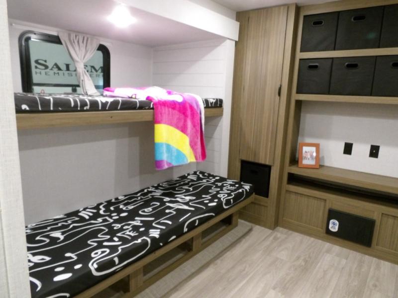 The Salem travel trailers are packed with hassle-free camping amenities! There are a variety of floorplans to choose from between three different regions. The heated and enclosed Accessibelly will help protect against the elements and debris during transport, and the exterior retro/metal redesign is sure to be eye-catching! There are stylish roller shades inside, along with updated backsplash, elegant curtain rods and curtains, plus many more interior comforts! Choose a Salem travel trailer today for quality and value!