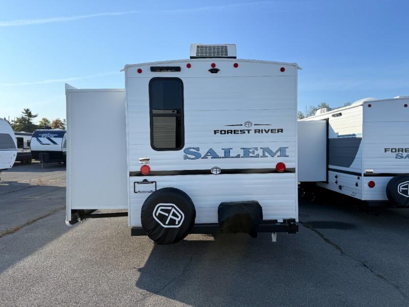 The Salem travel trailers are packed with hassle-free camping amenities! There are a variety of floorplans to choose from between three different regions. The heated and enclosed Accessibelly will help protect against the elements and debris during transport, and the exterior retro/metal redesign is sure to be eye-catching! There are stylish roller shades inside, along with updated backsplash, elegant curtain rods and curtains, plus many more interior comforts! Choose a Salem travel trailer today for quality and value!