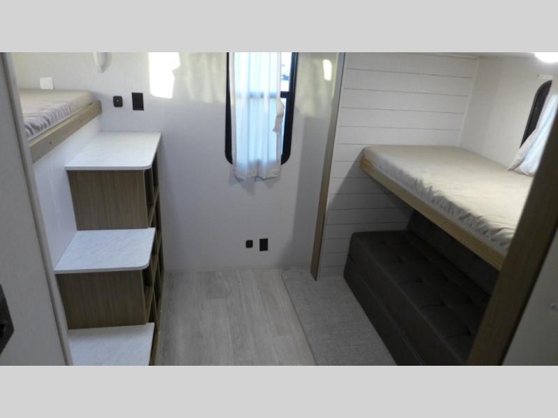 Your family will sleep comfortably with a private bunkhouse in the back and a private bedroom up front in this Salem travel trailer! Two entry doors allow you to enter this unit quickly and easily, and the StepAbove steps will provide a safe and solid entrance while you load up your gear. The large slide in the main living area holds the versa lounge and Versa Flex table for seating, dining, and working space. This model also includes a custom king bed with Versa-Tilt in the front bedroom for a great night's rest!