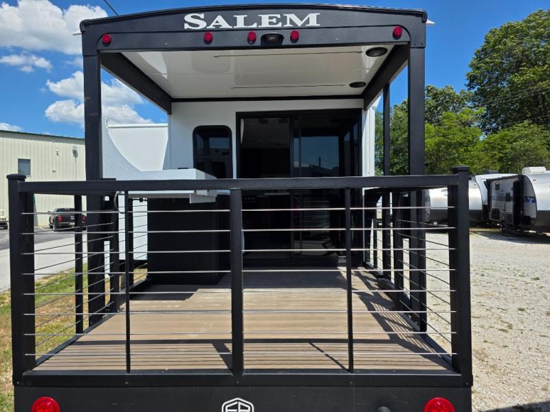 The Salem travel trailers are packed with hassle-free camping amenities! There are a variety of floorplans to choose from between three different regions. The heated and enclosed Accessibelly will help protect against the elements and debris during transport, and the exterior retro/metal redesign is sure to be eye-catching! There are stylish roller shades inside, along with updated backsplash, elegant curtain rods and curtains, plus many more interior comforts! Choose a Salem travel trailer today for quality and value!