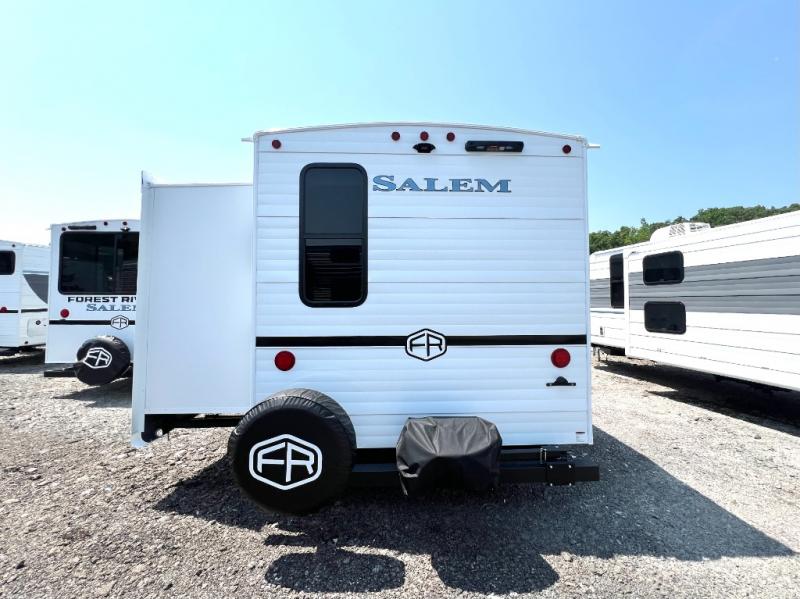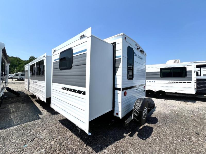 The Salem travel trailers are packed with hassle-free camping amenities! There are a variety of floorplans to choose from between three different regions. The heated and enclosed Accessibelly will help protect against the elements and debris during transport, and the exterior retro/metal redesign is sure to be eye-catching! There are stylish roller shades inside, along with updated backsplash, elegant curtain rods and curtains, plus many more interior comforts! Choose a Salem travel trailer today for quality and value!