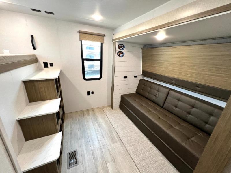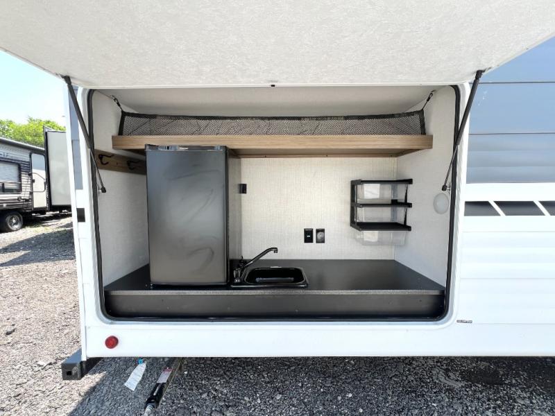 Do you need a break from the mundane camping life? If so, it's time to check out this exciting and full-featured Salem travel trailer! This unit provides two separated sleeping spaces; a rear private bunkhouse and a front private bedroom. Another feature that is just as helpful as the one in your own home is the kitchen. With an oversized refrigerator, cooktop, double sink, and abundant cabinet storage, you will be able to create delicious meals for the entire family. Plus, if you prefer to have a sunrise breakfast, you can simply take your preparations outside to the outdoor kitchen!