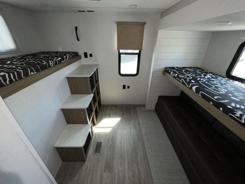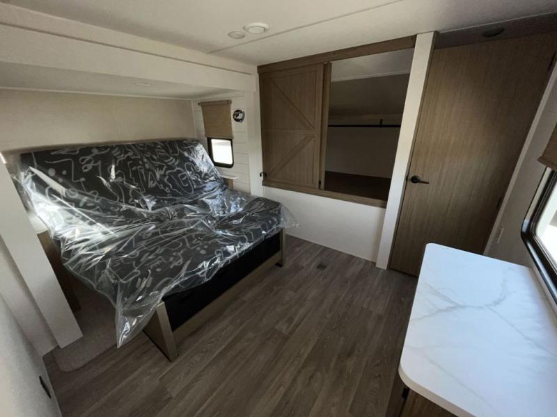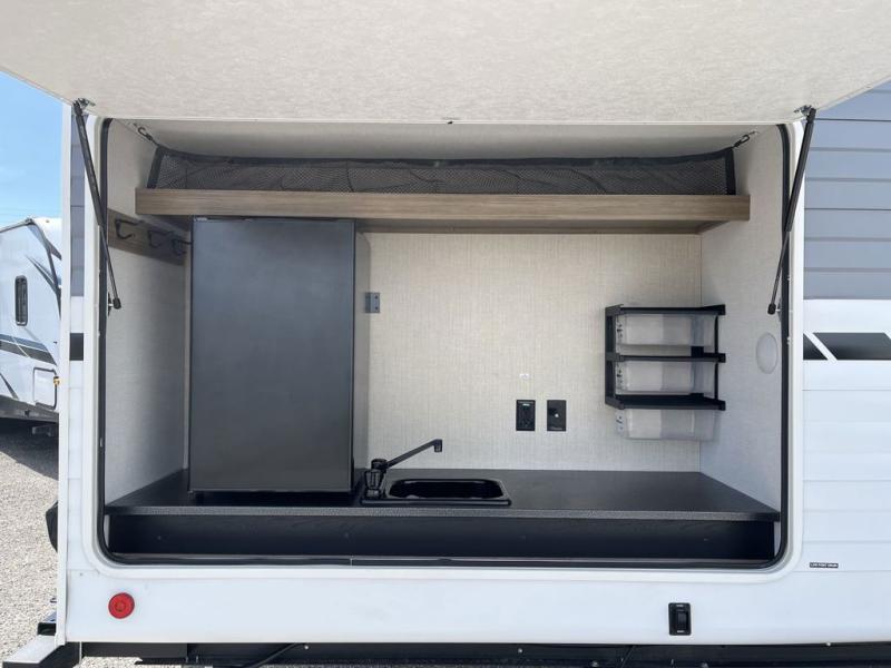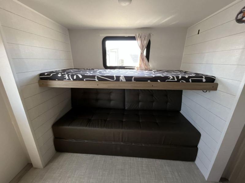 Do you need a break from the mundane camping life? If so, it's time to check out this exciting and full-featured Salem travel trailer! This unit provides two separated sleeping spaces: a rear private bunkhouse and a front private bedroom. Another feature that is just as helpful as the one in your own home is the kitchen. With a refrigerator, cooktop, double sink, and abundant cabinet storage, you will be able to create delicious meals for the entire family.