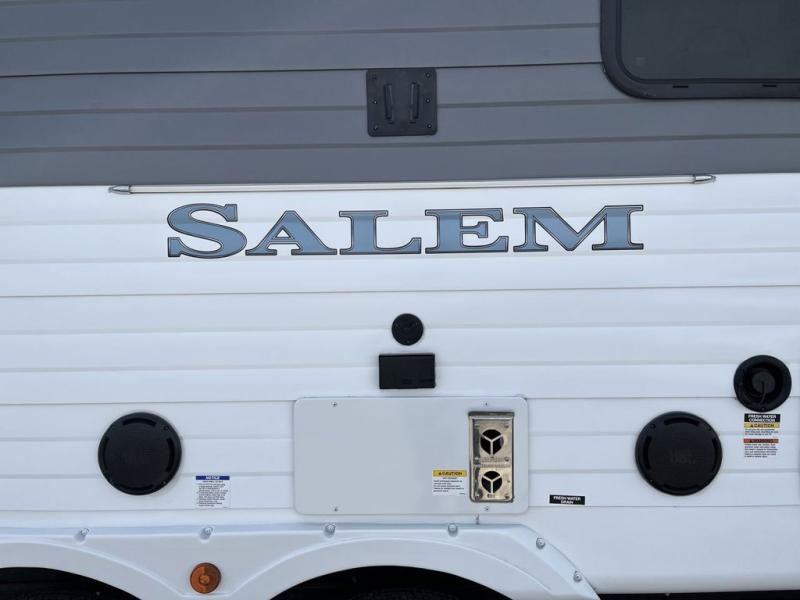 The Salem travel trailers are packed with hassle-free camping amenities! There are a variety of floorplans to choose from between three different regions. The heated and enclosed Accessibelly will help protect against the elements and debris during transport, and the exterior retro/metal redesign is sure to be eye-catching! There are stylish roller shades inside, along with updated backsplash, elegant curtain rods and curtains, plus many more interior comforts! Choose a Salem travel trailer today for quality and value!