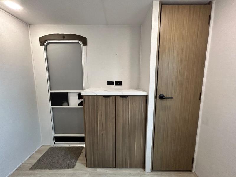 After you've had a long day of sightseeing and adventuring, you will certainly appreciate having this Salem travel trailer to come back to! If you aren't ready to stay indoors for the night, you can keep the party going outside under the 18' awning, and if you need any extra lawn chairs, you can grab them from the pass-through storage compartment. And, you don't have to stop enjoying a good fire just because you have to go inside because the interior fireplace will provide great ambiance. There are dual entry doors which will definitely come in handy when camping with a large group, and there is plenty of seating space on the Versa-Lounge and Vera Flex table.