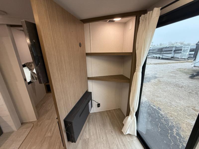 After you've had a long day of sightseeing and adventuring, you will certainly appreciate having this Salem travel trailer to come back to! If you aren't ready to stay indoors for the night, you can keep the party going outside under the 18' awning, and if you need any extra lawn chairs, you can grab them from the pass-through storage compartment. And, you don't have to stop enjoying a good fire just because you have to go inside because the interior fireplace will provide great ambiance. There are dual entry doors which will definitely come in handy when camping with a large group, and there is plenty of seating space on the Versa-Lounge and Vera Flex table.