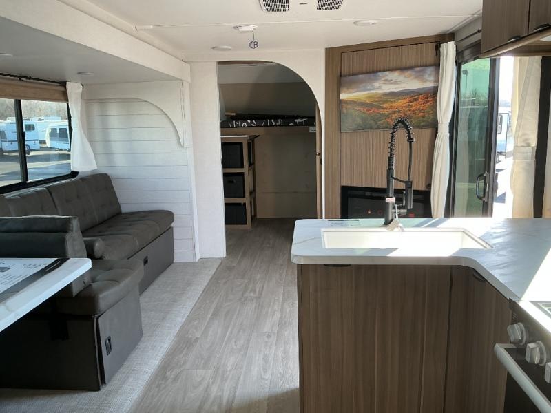 After you've had a long day of sightseeing and adventuring, you will certainly appreciate having this Salem travel trailer to come back to! If you aren't ready to stay indoors for the night, you can keep the party going outside under the 18' awning, and if you need any extra lawn chairs, you can grab them from the pass-through storage compartment. And, you don't have to stop enjoying a good fire just because you have to go inside because the interior fireplace will provide great ambiance. There are dual entry doors which will definitely come in handy when camping with a large group, and there is plenty of seating space on the Versa-Lounge and Vera Flex table.