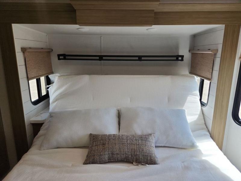 With any Salem Grand Villa destination trailer by Forest River, you can call home wherever you park it! There is a heated and enclosed Accessibelly for added protection, LED "Blade Lighting" under the awning, Lippert On-The-Go ladder prep, plus many more exterior conveniences. Elegant curtain rods and curtains will have you feeling right at home, along with stainless steel kitchen appliances, stylish roller shades, and enhanced floating shelves for added storage. Each model includes heavy duty cabinet hinges for safety and durability, a 60k on-demand tankless water heater for endless hot showers, a JBL 3-Zone media center, plus available options to further customize your trailer.