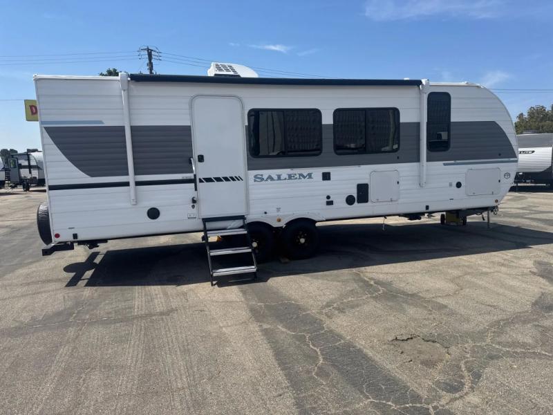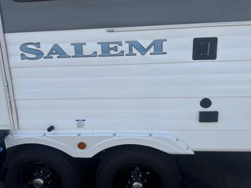 The Salem travel trailers and toy haulers are value-minded units packed with great camping features! There are a variety of floorplans to choose from between two different regions. The enclosed Accessibelly will help protect against the elements and debris during transport, and the exterior retro/metal redesign is sure to be eye-catching! There are stylish roller shades inside, along with updated backsplash, elegant curtain rods and curtains, plus many more interior comforts! Choose a Salem today for quality and value!