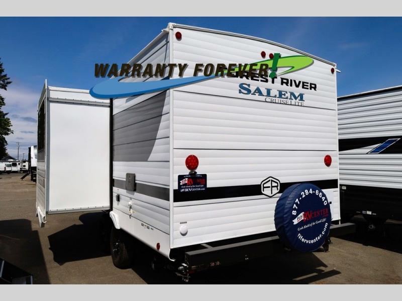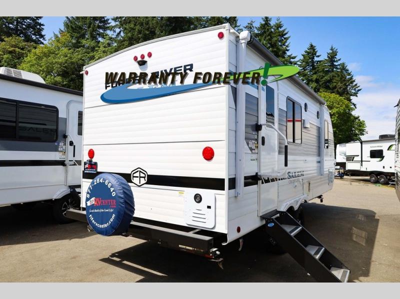 The Salem Cruise Lite travel trailers and toy haulers are value-minded units packed with great camping features! There are a variety of floorplans to choose from between two different regions. The enclosed Accessibelly will help protect against the elements and debris during transport, and the exterior retro/metal redesign is sure to be eye-catching! There are stylish roller shades inside, along with updated backsplash, elegant curtain rods and curtains, plus many more interior comforts! Choose a Salem Cruise Lite today for quality and value!